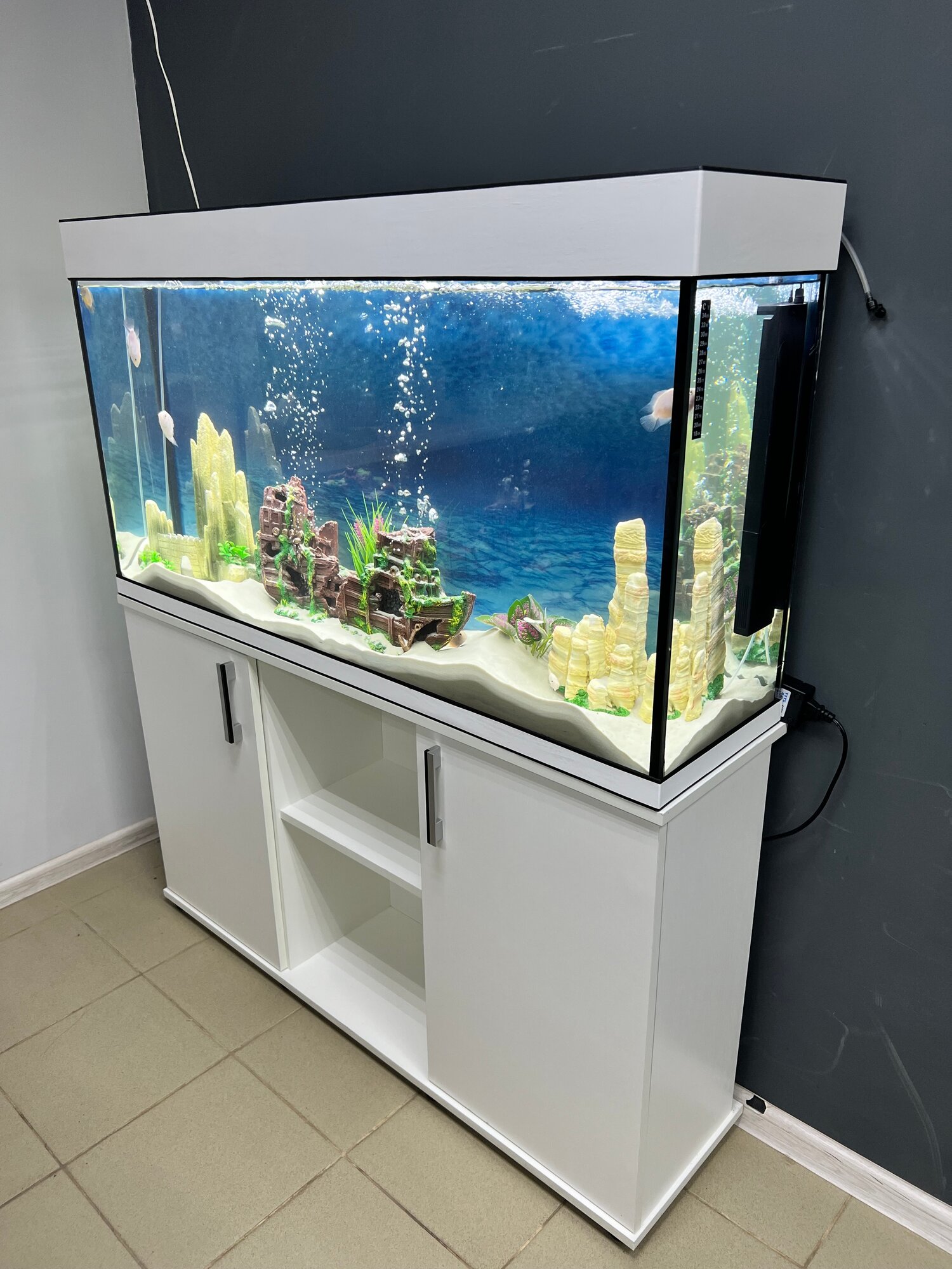 Аквариум 250 л AquariumBest с тумбой цвет Белый гллянец 121х31х71 (ДхШхВ)
