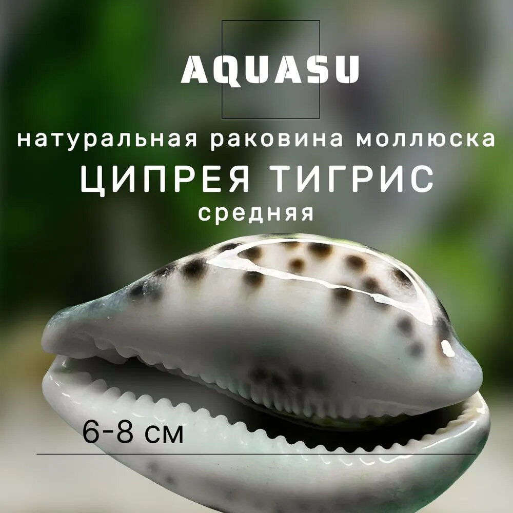 Купить AQUASU Раковина моллюска Ципрея тигрис средняя, 6-8 см - натуральная ракушка для аквариума