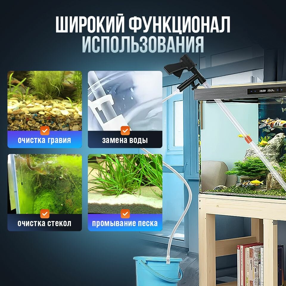 Набор для очистки аквариума / грунтоочиститель с сифоном и скребком интересное: