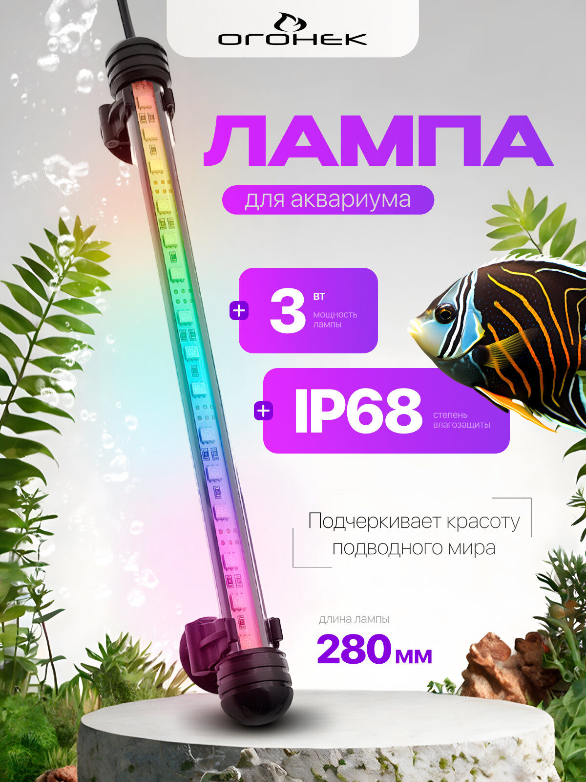 Светильник лампа для аквариума светодиодная RGB Огонек OG-LDP04 (280мм) интересное: