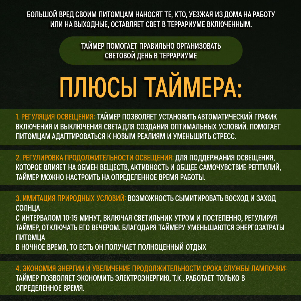Террариумный светильник с таймером, греющая лампочка UVB 3% в комплекте, для ящериц, черепах, интересное: