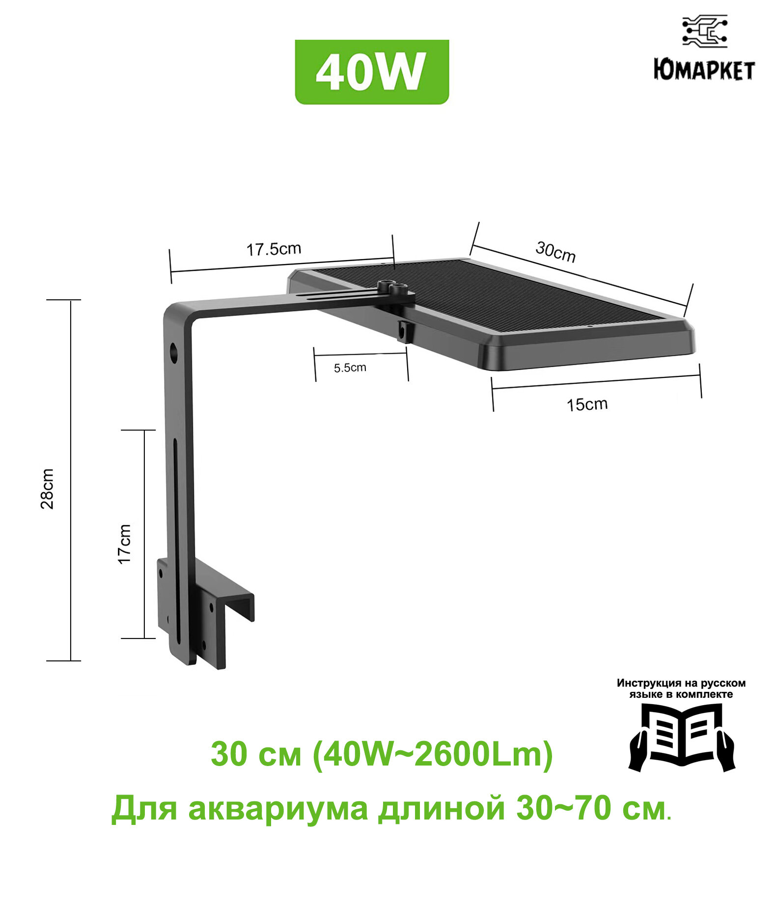 Светильник для аквариума HYGGER SLIM SMART LED WRGB 30-70см 40W, IP68 с функцией рассвет/закат интересное: