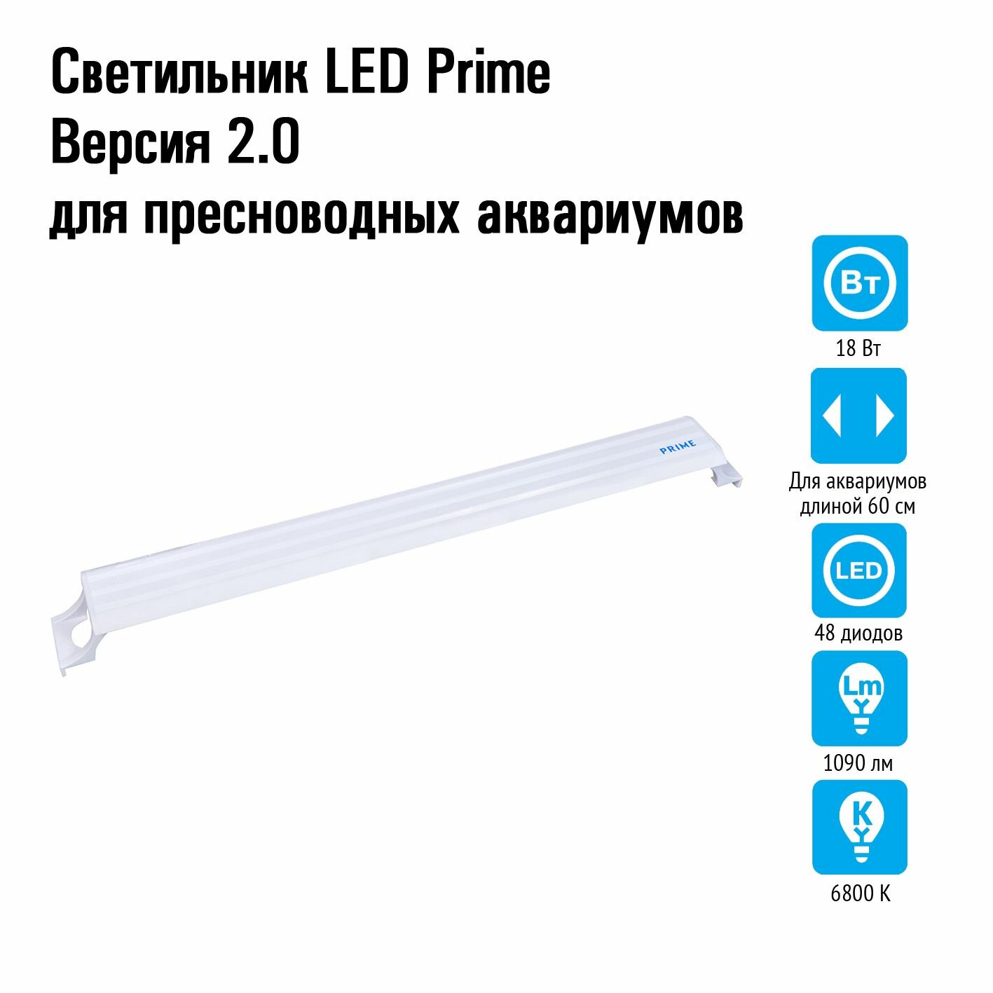 Светильник LED Prime Версия 2.0 для пресноводных аквариумов, 18W, 60 см, белый