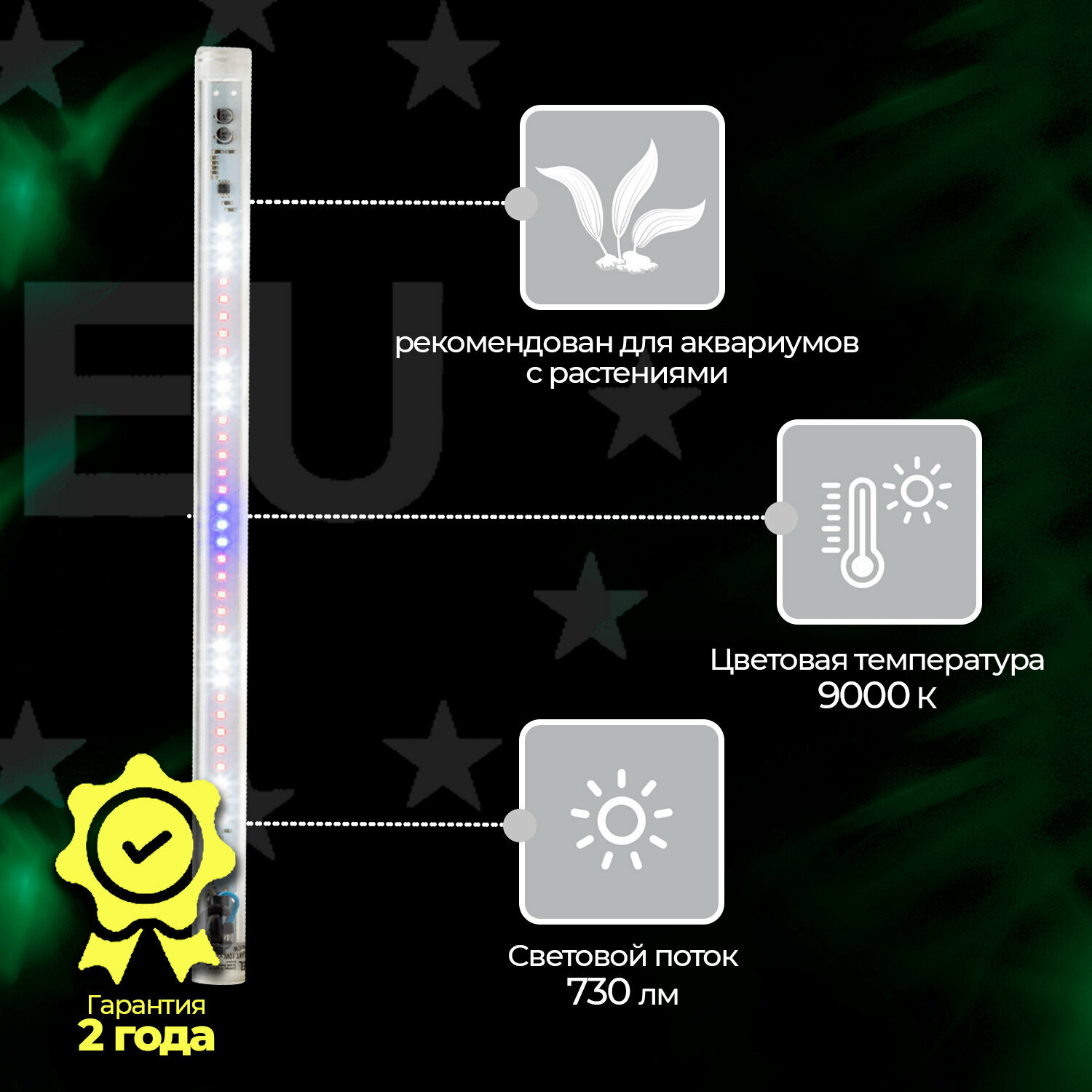 | Дополнительная информация | Особенность светильника в обеспечении идеального освещения аквариума и создания необходимых условий для роста и правильного развития растений. Цветовая температура специально подобрана с учетом потребностей растений. |