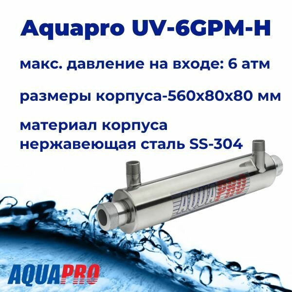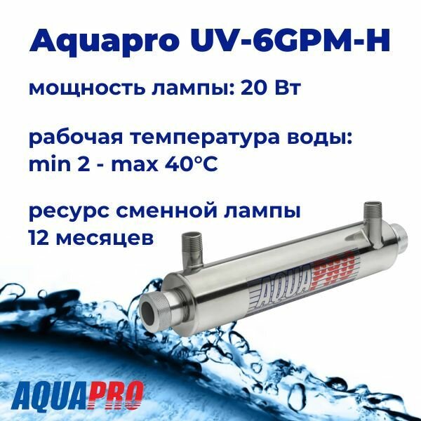 Фильтр Aquapro UV-6GPM-H УФ стерилизатор, 1"