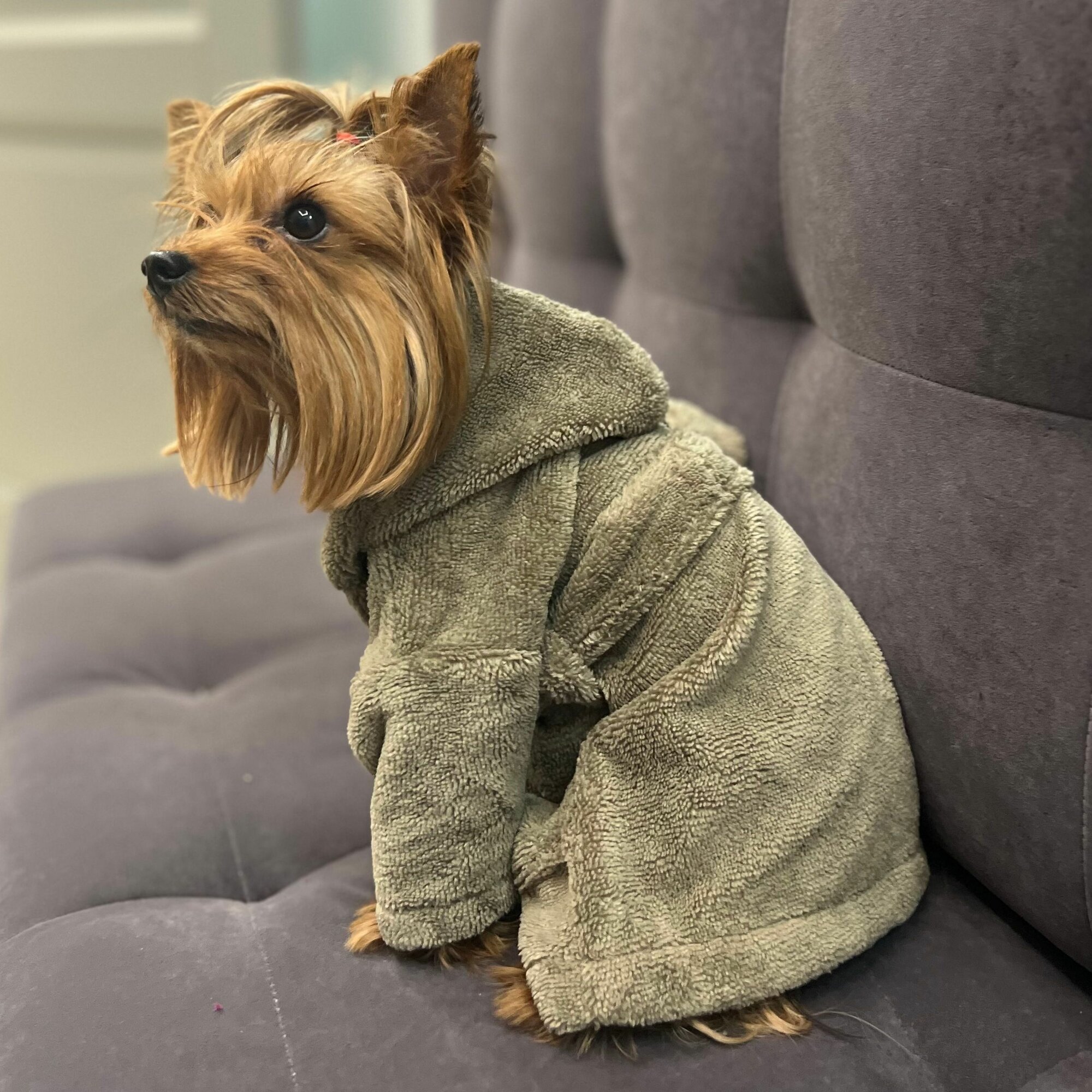 Халат для собак маленьких пород серый