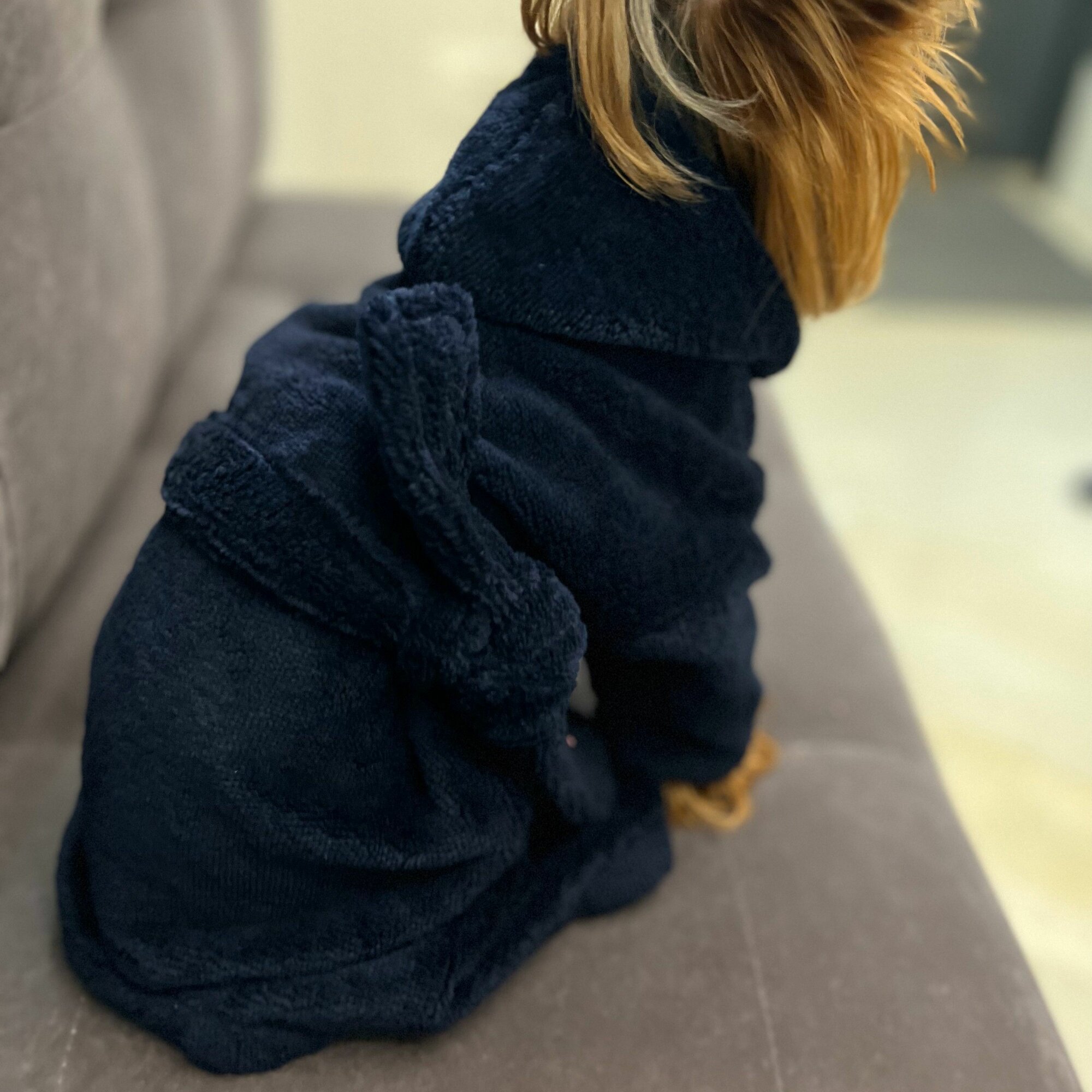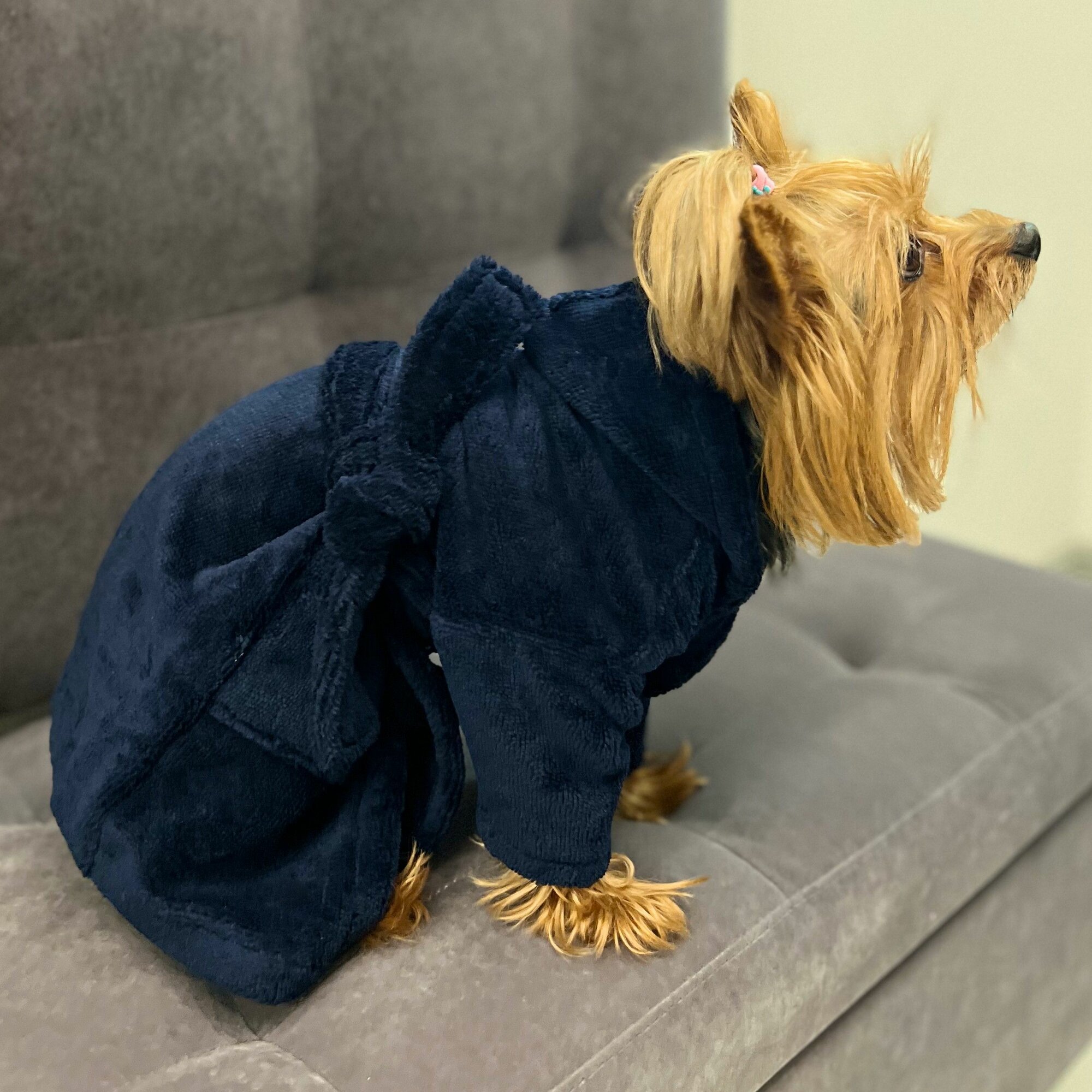 Халат для собак маленьких пород темно-синий интересное: