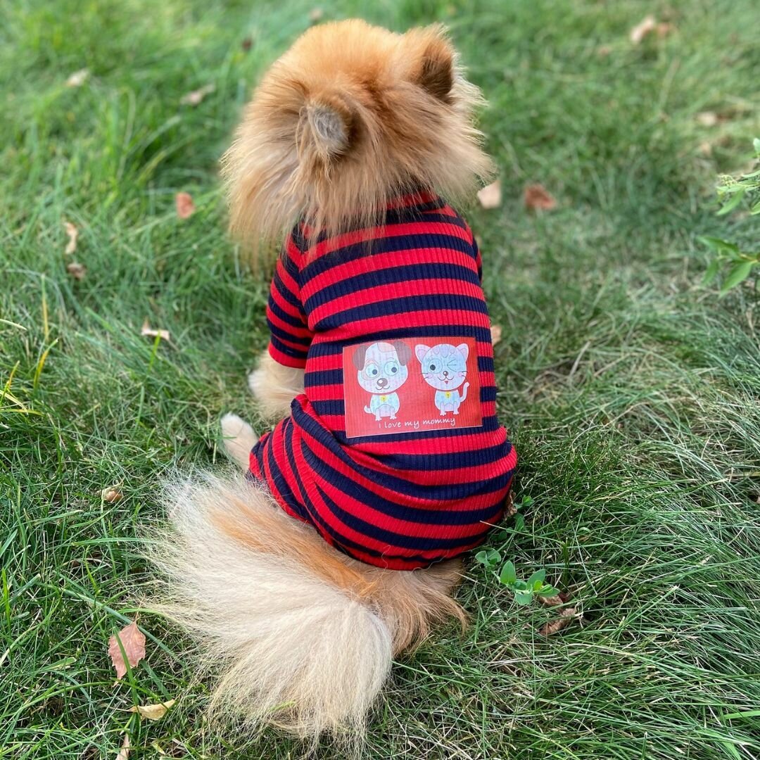 Комбинезон для собак и кошек "Я люблю свою маму" красный, размер S / ШпицельШоп
