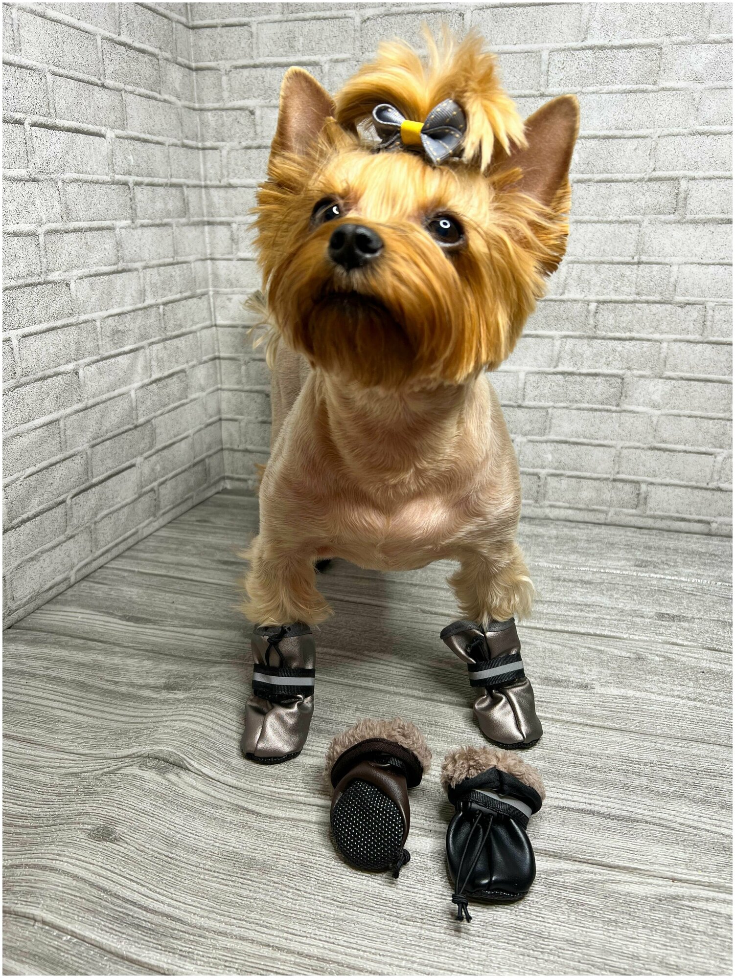 Обувь для собак на меху из эко кожи / Двойная фиксация: затяжка и липучка / Непромокаемые / Размер 4 / Серые