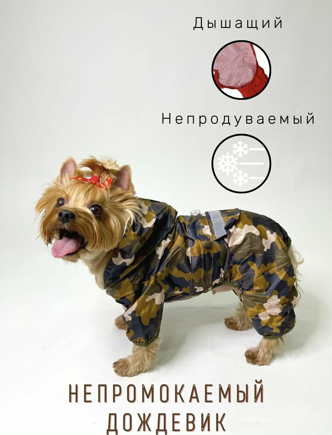 Непродуваемый дождевик для собак мелких и средних пород / С сеточкой / С капюшоном / Размер 4XL