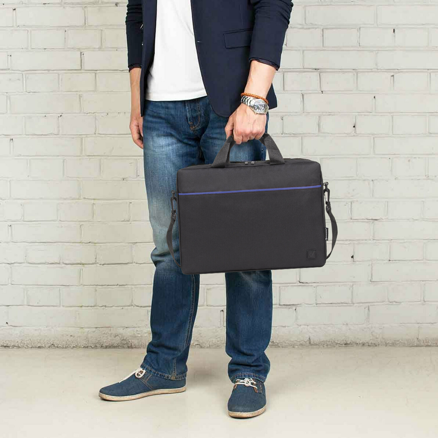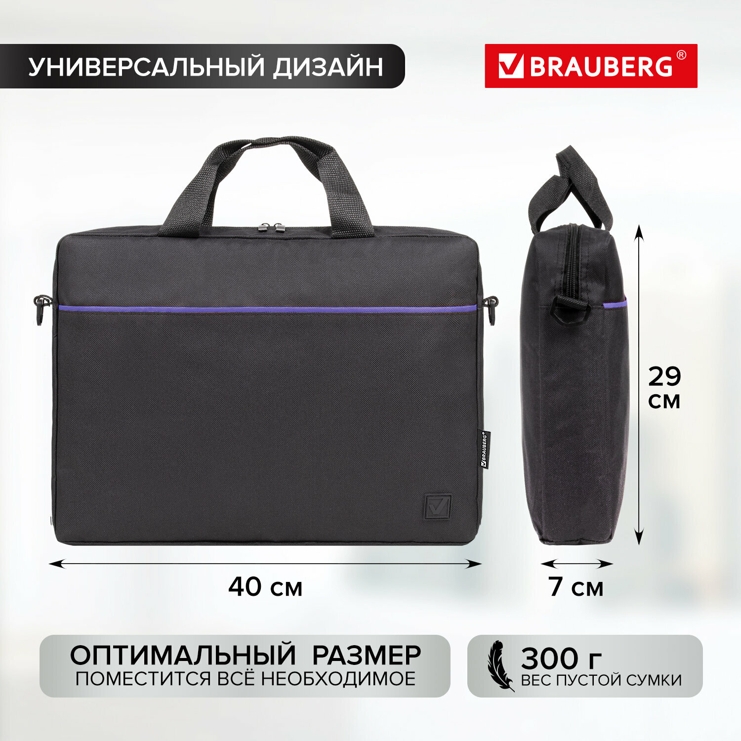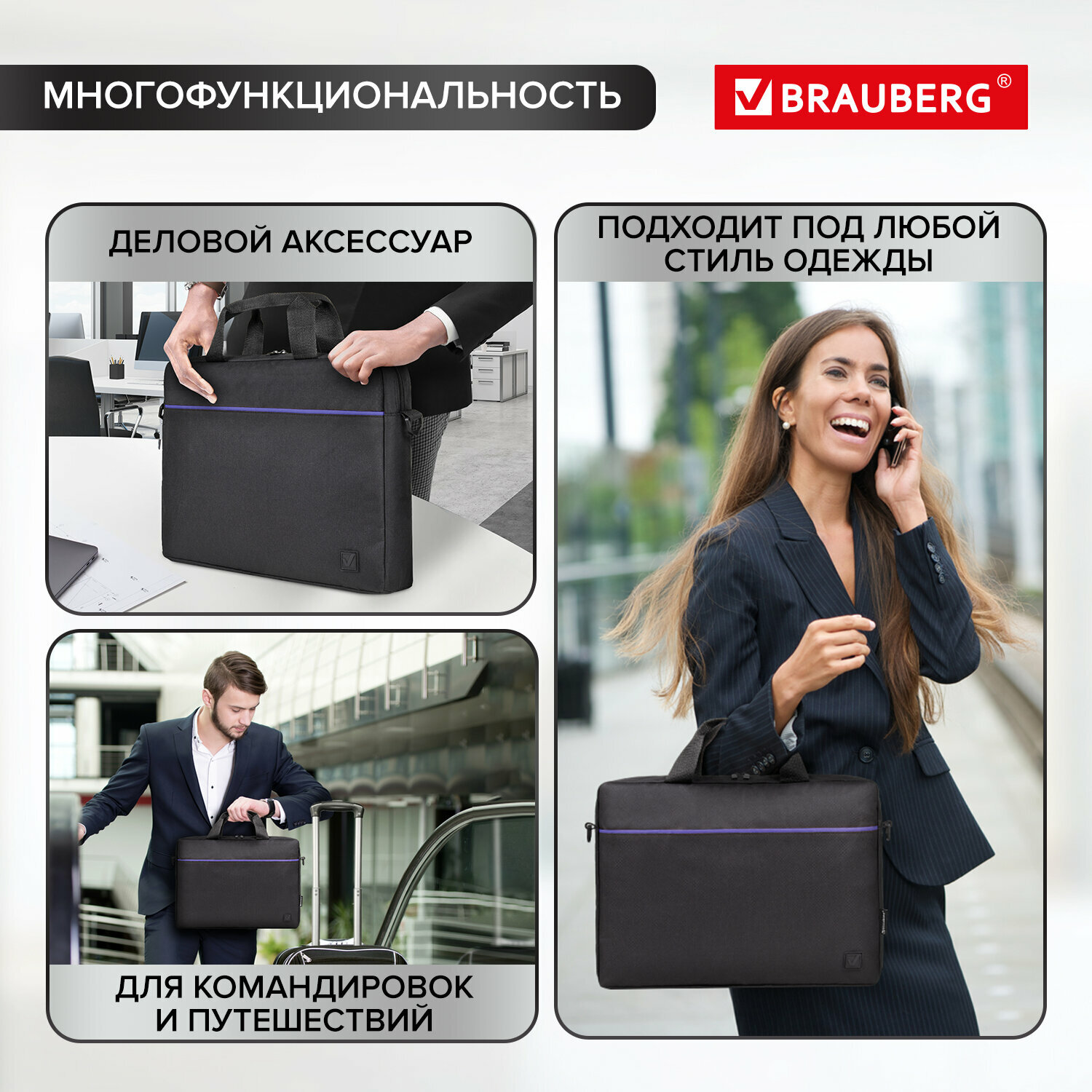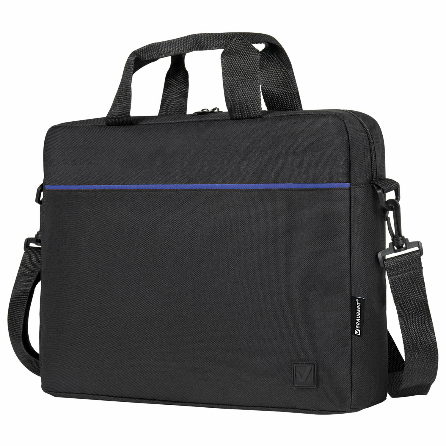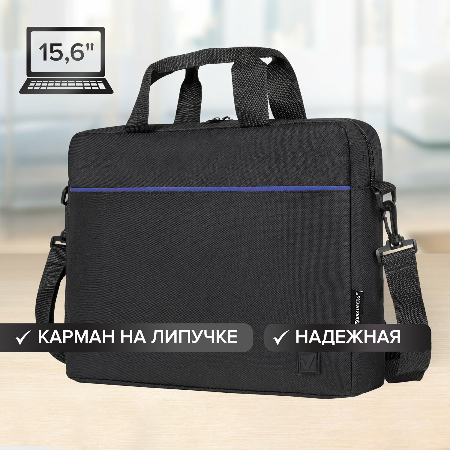 Сумка портфель Brauberg Practical с отделением для ноутбука 15,6", Blue line, черная, 29х40х7 см, 272603 интересное: