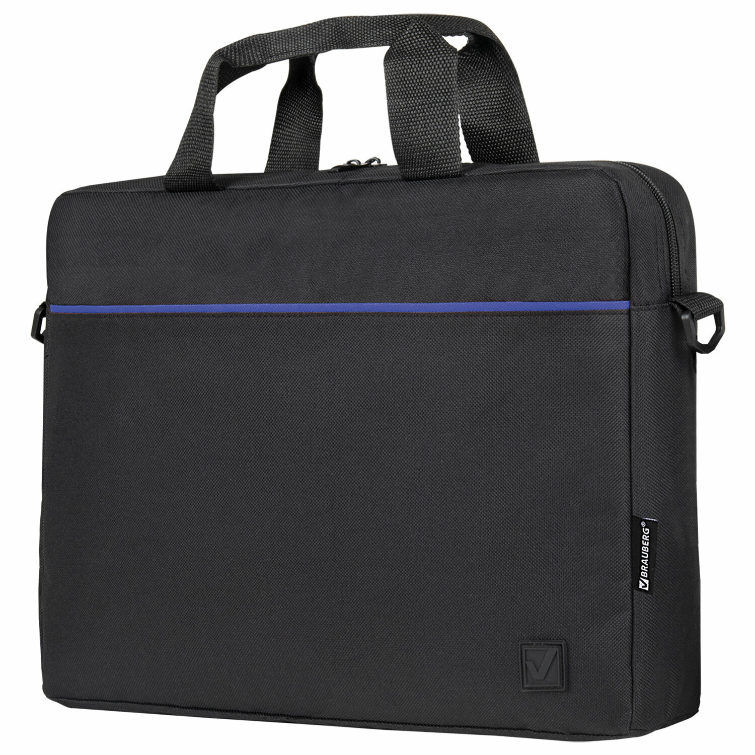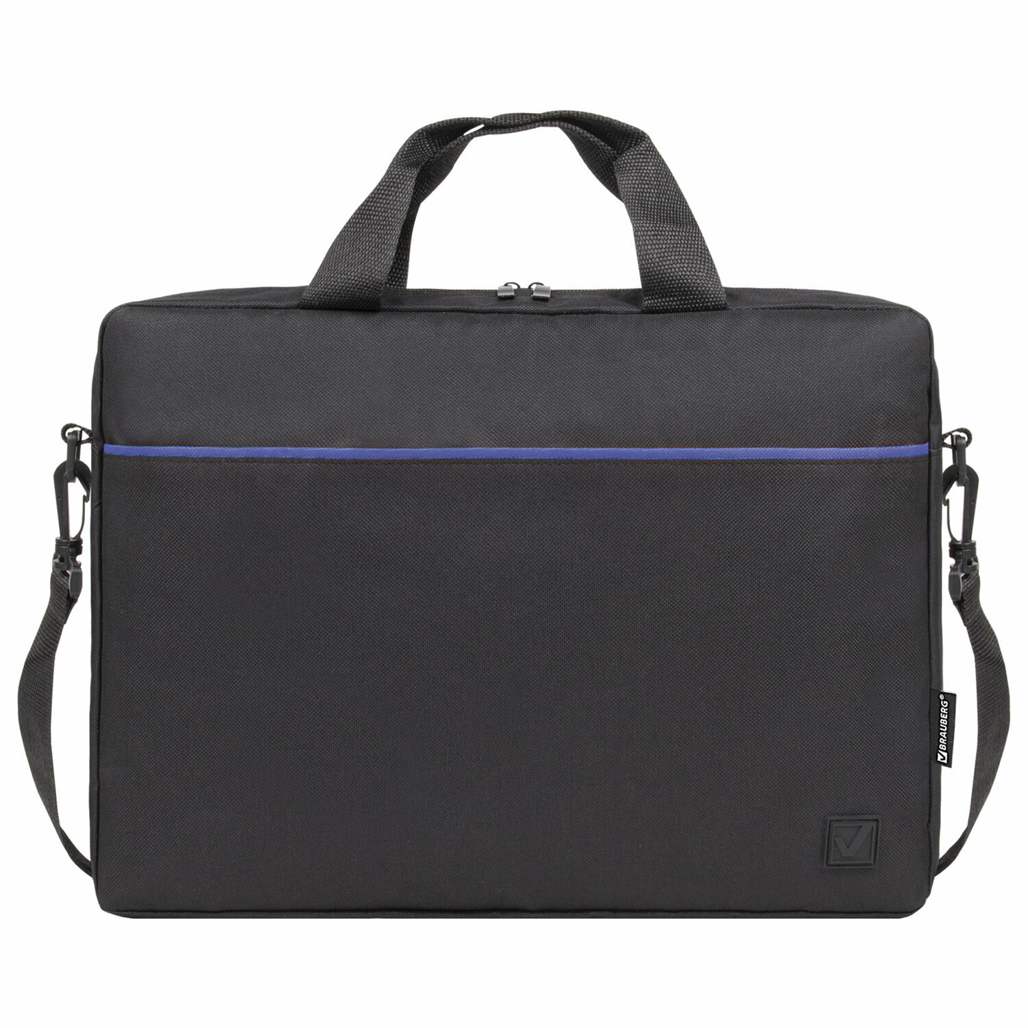 Купить Сумка портфель Brauberg Practical с отделением для ноутбука 15,6", Blue line, черная, 29х40х7 см, 272603