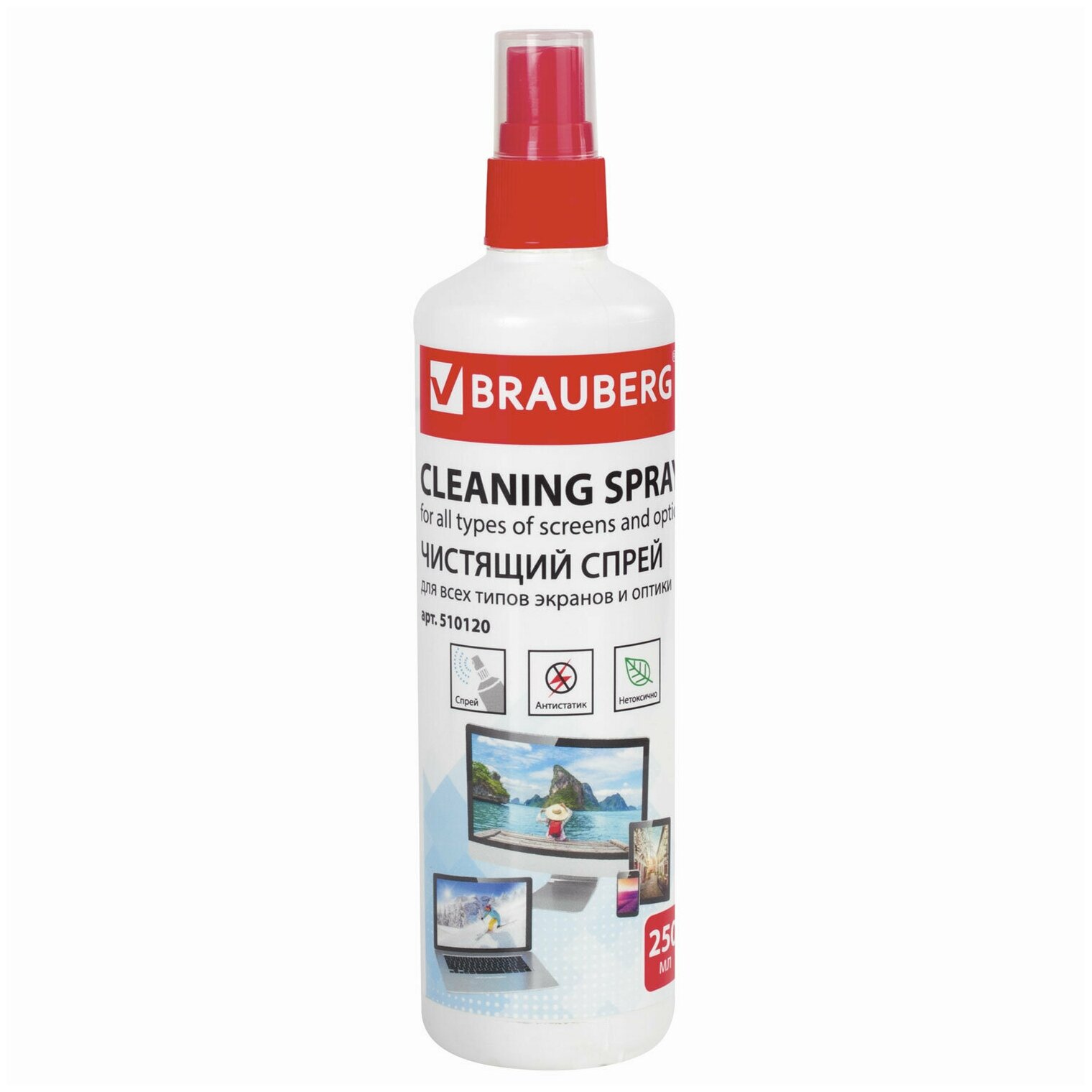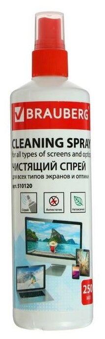 Чистящее средство/жидкость-спрей Brauberg для чистки LCD (ЖК)-мониторов, техники, оптики и стекол, 250 мл, 510120