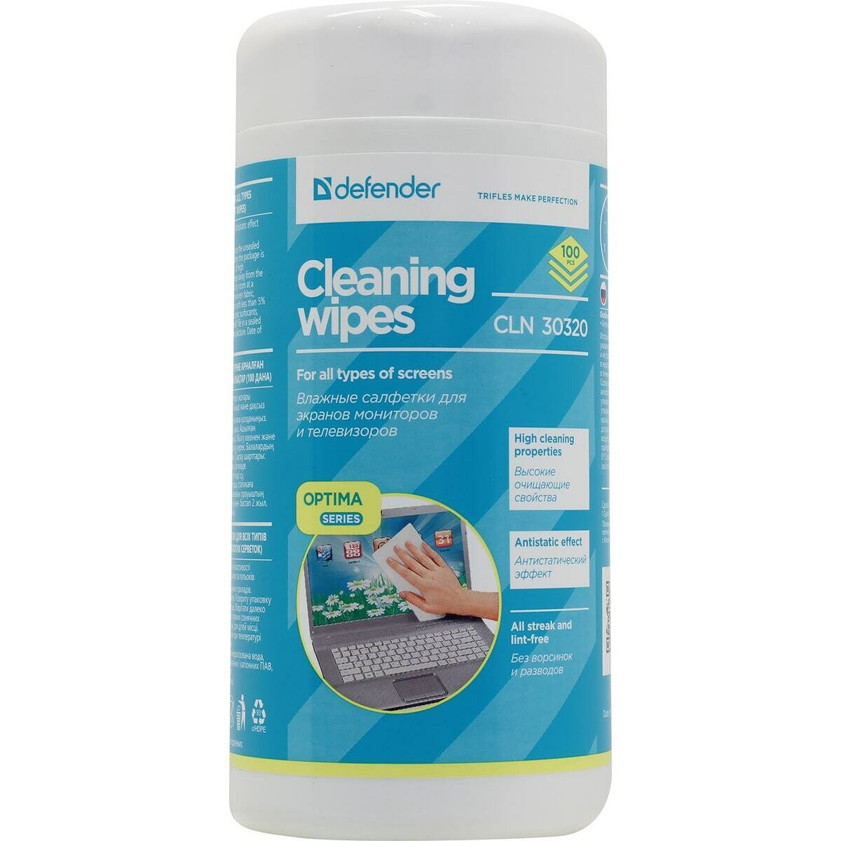Салфетка влажная Defender CLN 30320 Eco для экранов, туба 100шт.