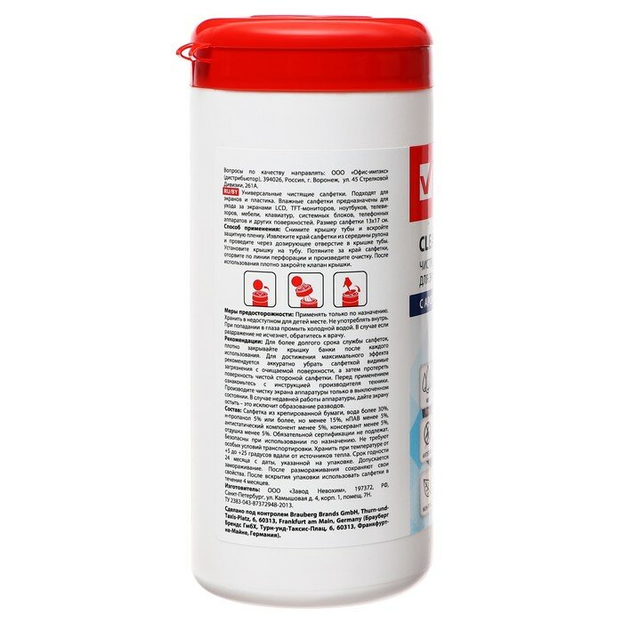 BRAUBERG Салфетки для экранов всех типов и оптики brauberg max плотные, 13х17 см, туба 100 шт., влажные, 513284