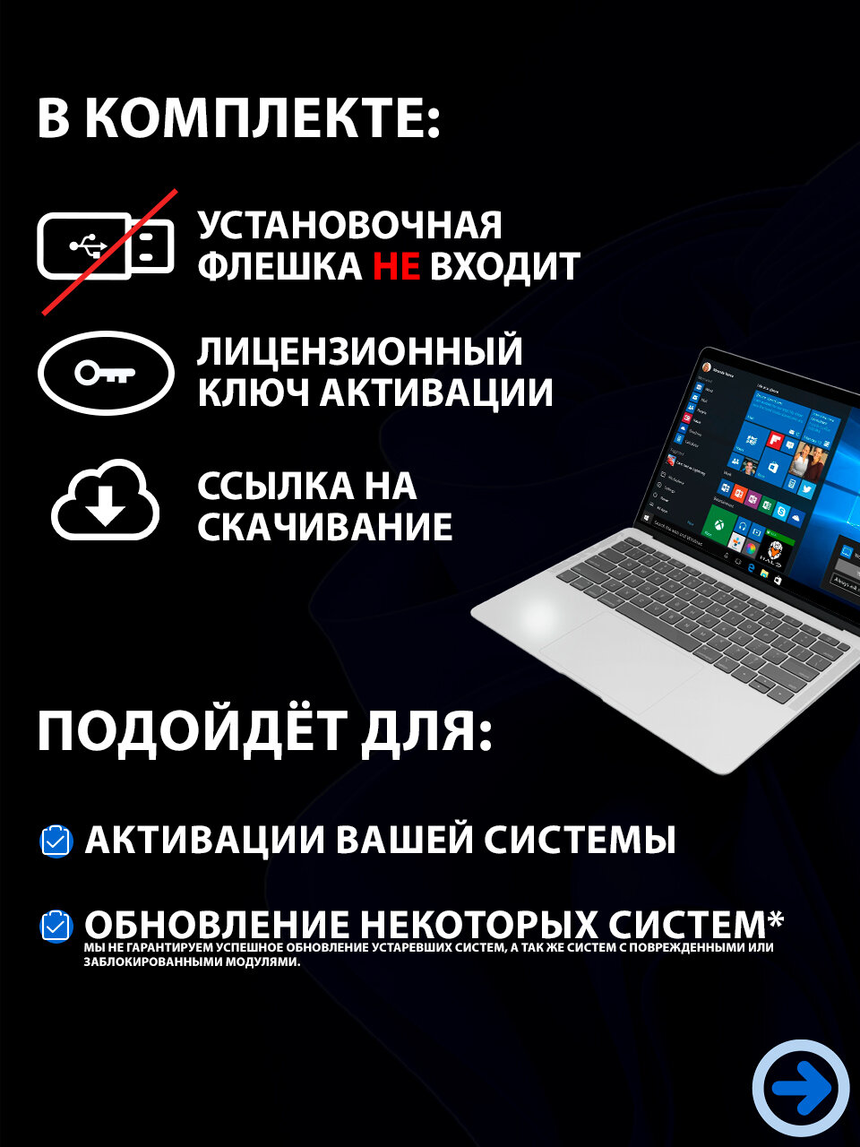 Microsoft Windows 10 Pro - ключ активации для 1 компьютера
