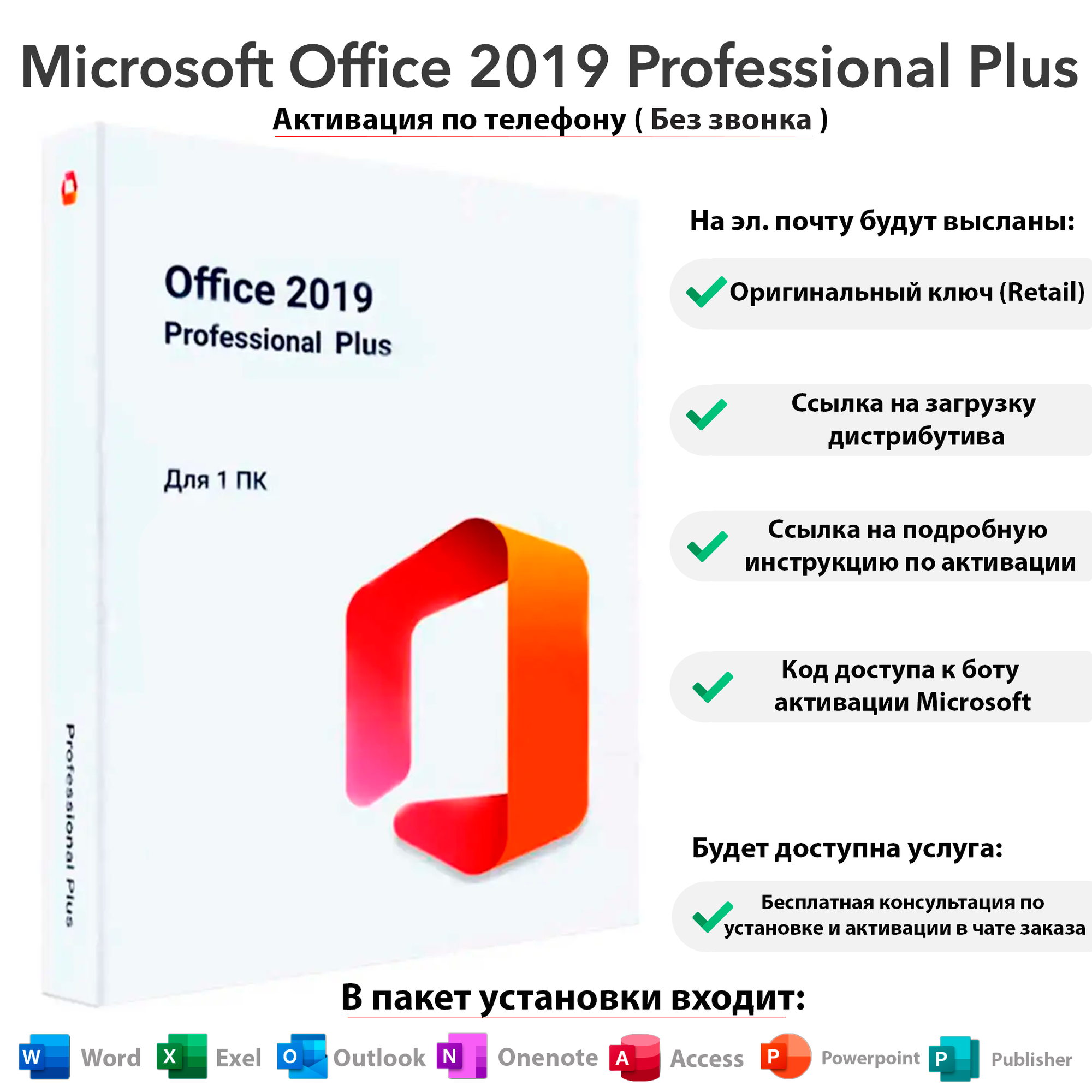 Купить Microsoft Office 2019 Professional Plus - 32/64 бит, Retail, Мультиязычный, Активация по телефону