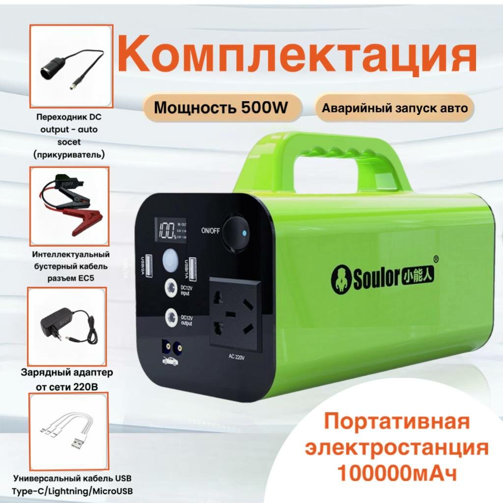 Портативный источник питания 500W 220В Power bank 100000 mAh 320Wh Солнечный электрогенератор Пуско-зарядное устройство 800А интересное: