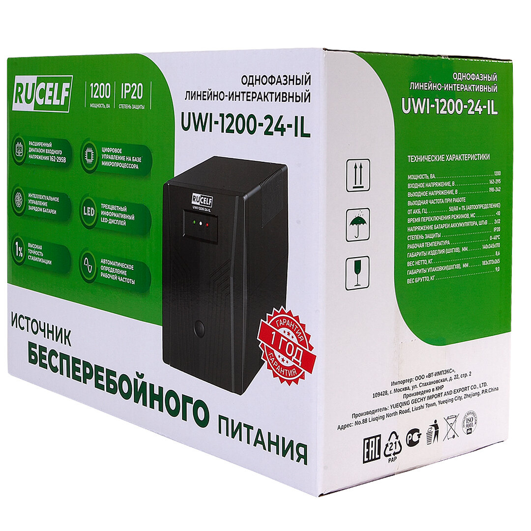 Источник бесперебойного питания RUCELF 2000 ВА/1200 Вт UWI-2000-24-IL со встроенными АКБ 2шт 12 В/9 Ач