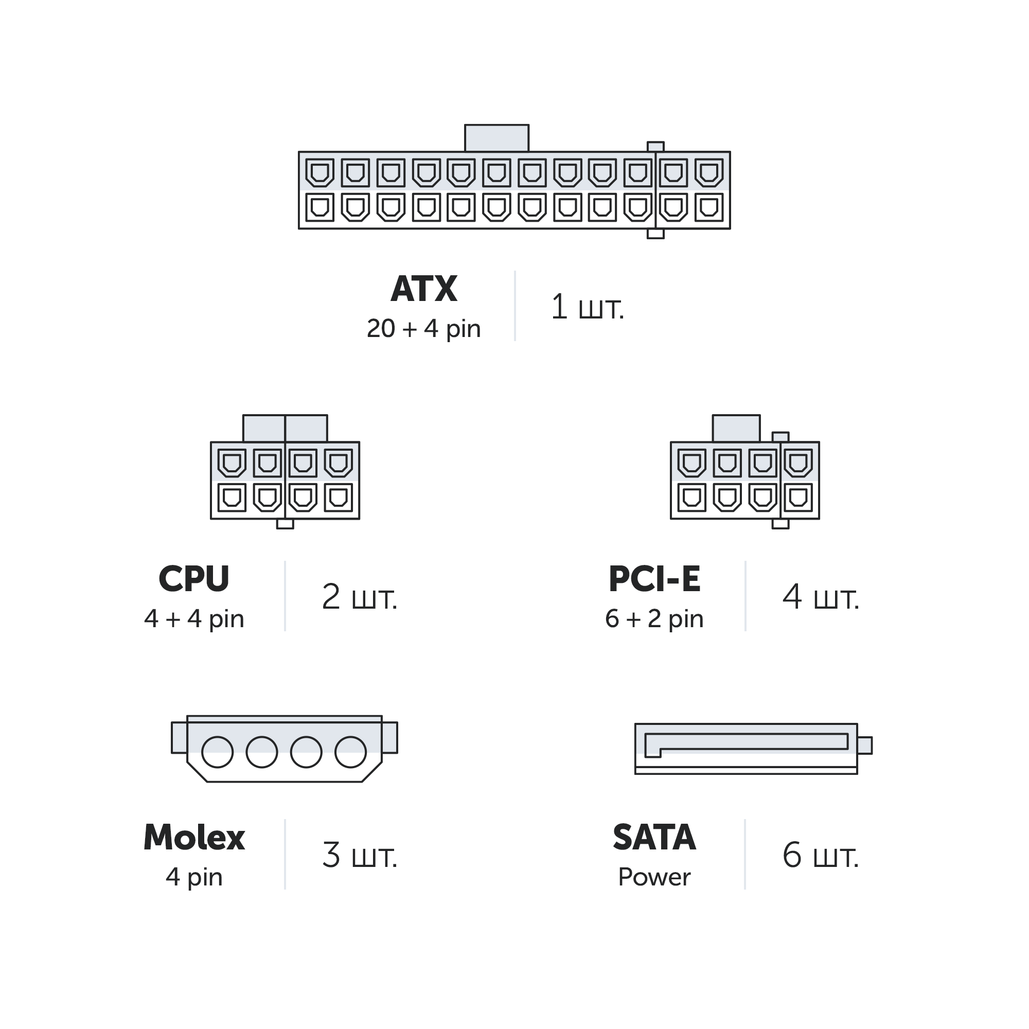| Количество разъемов 4-pin Molex | 4 |