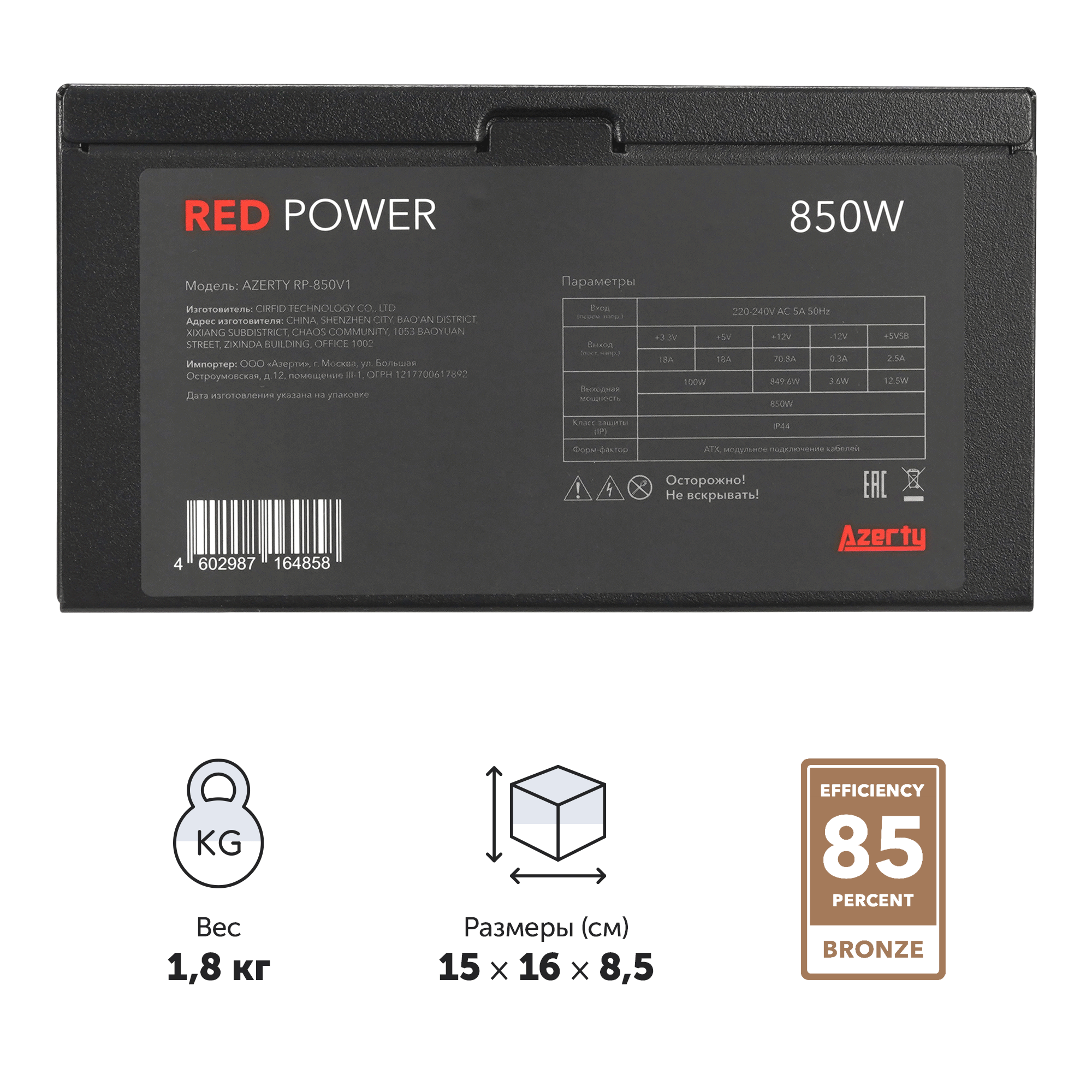 Блок питания компьютера Azerty RP-850V1