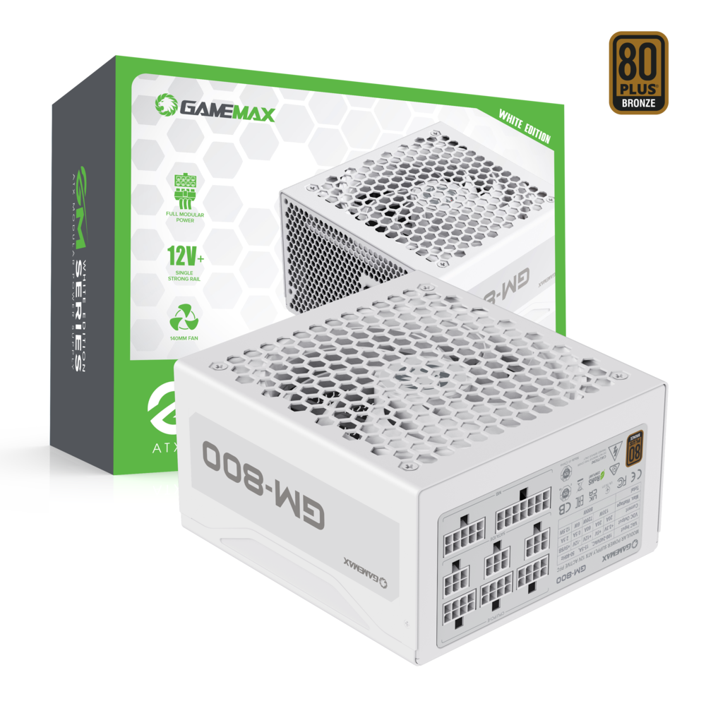Купить Блок питания GameMax GM-800 White Modular (Белый 800W 80+Bronze 140мм 20+4pin 2*4+4pin(CPU) 4*6+2pin(PCI-E) 6*SATA 2*MOLEX)