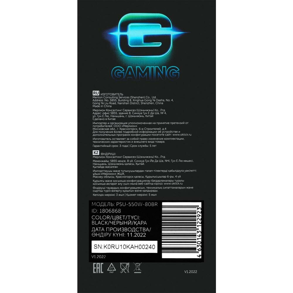 Блок питания GMNG PSU-550W-80BR, 550Вт, 120мм, черный, retail интересное: