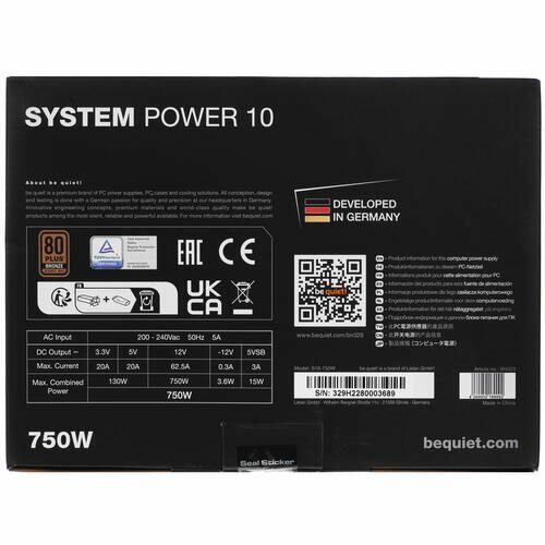 Блок питания BE QUIET! 750W Power 10 80 PLUS Bronze BN329 интересное: