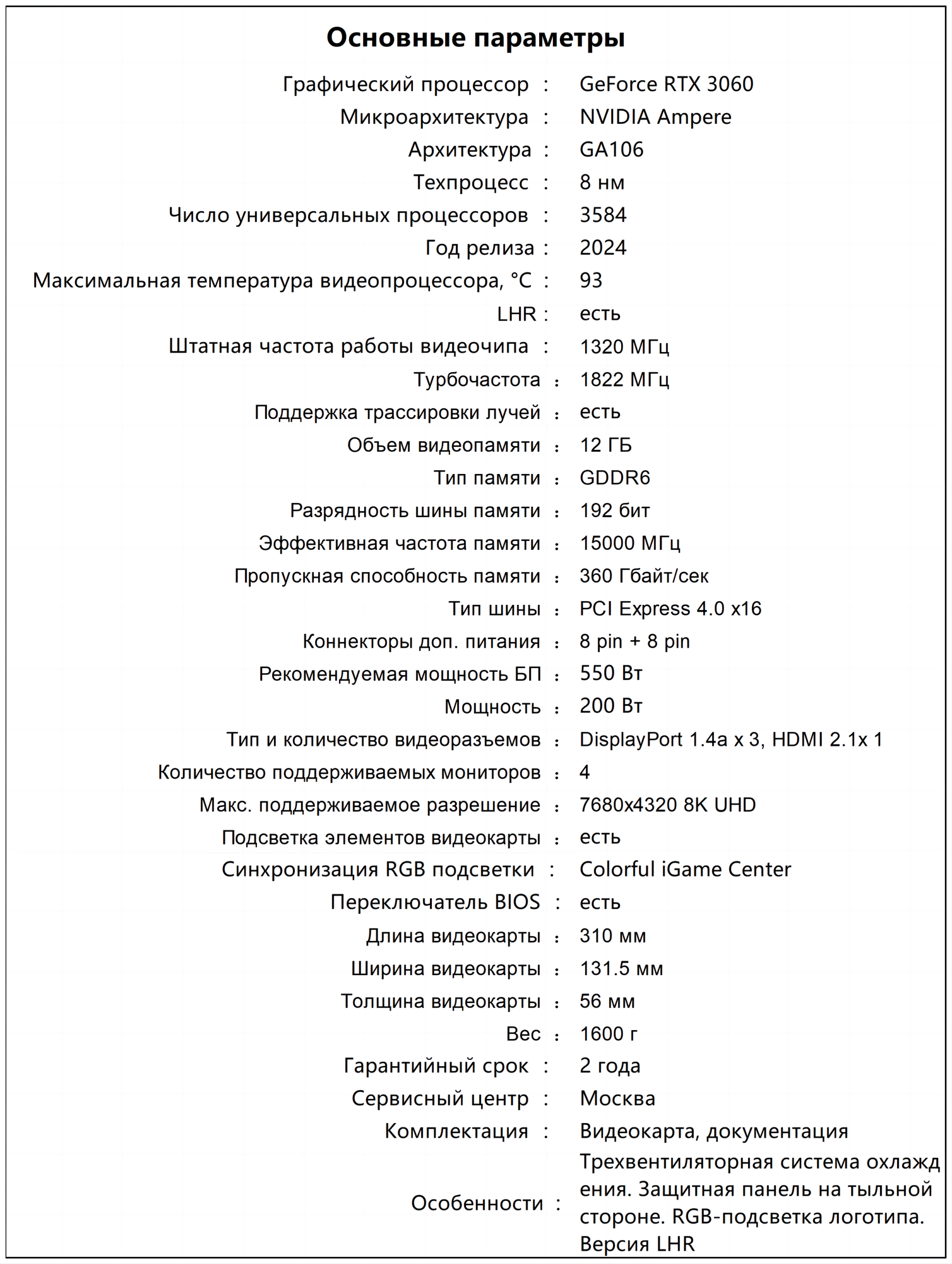 | Название видеокарты | NVIDIA GeForce RTX 3060 |