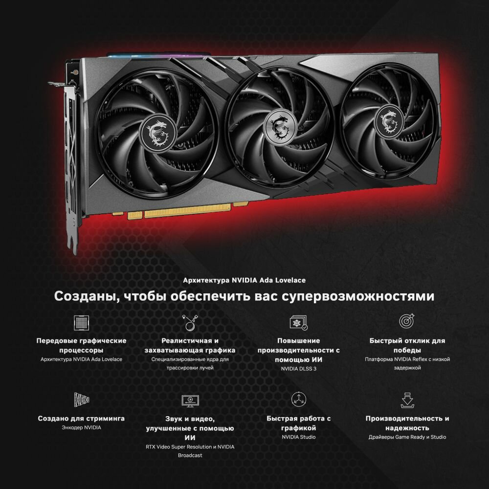 Видеокарта MSI (RTX 4070 SUPER 12G GAMING X SLIM) GeForce RTX 4070 SUPER 12GB GAMING X SLIM