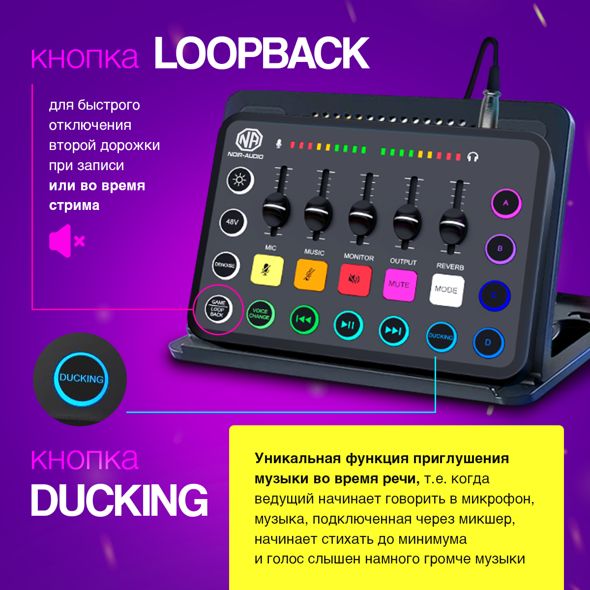 Внешняя звуковая карта USB NOIR-audio MIX-1 с микшером и голосовыми эффектами интересное: