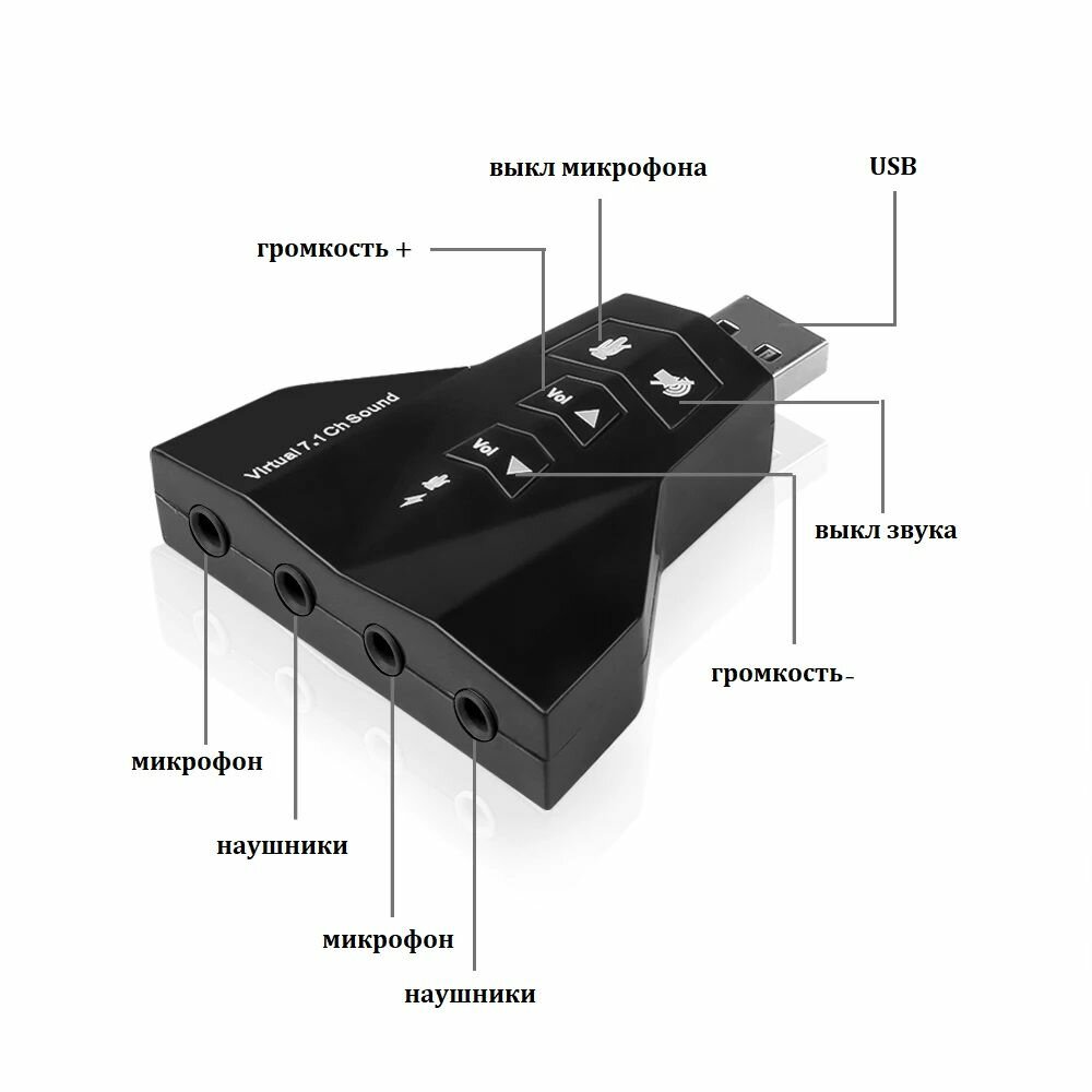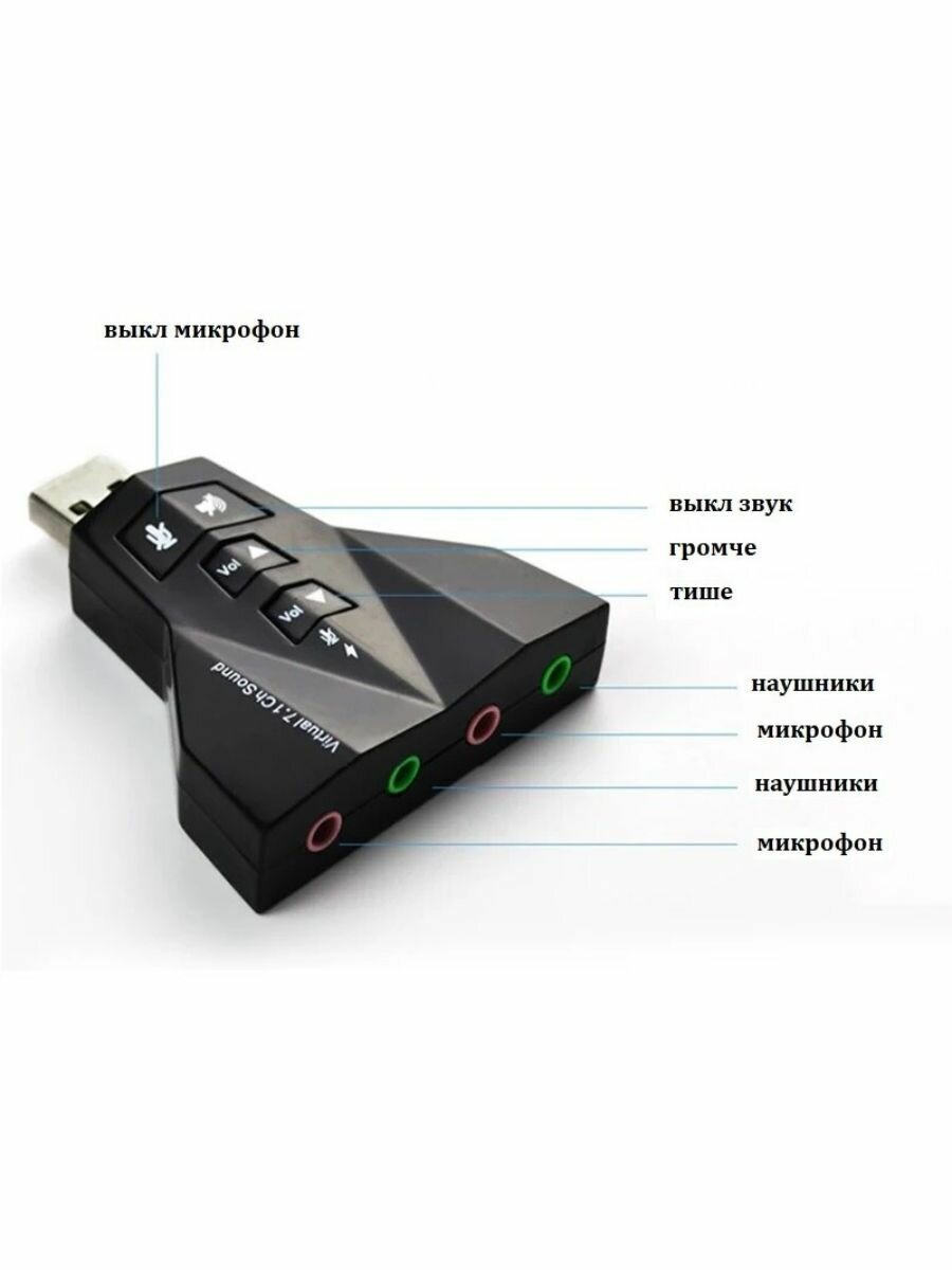 Внешняя звуковая карта USB 7.1 / адаптер для наушников с разъемом для микрофона 3,5 мм / аудио адаптер, переходник для наушников интересное: