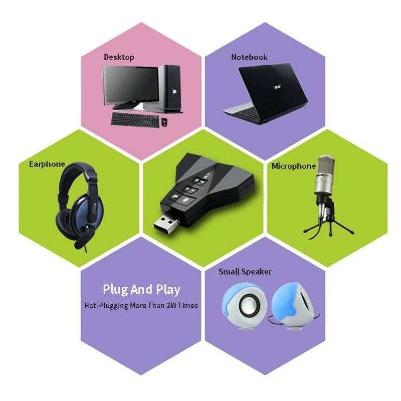 Ниже Вы можете прочитать отзывы на Внешняя звуковая карта USB 7.1 / адаптер для наушников с разъемом для микрофона 3,5 мм / аудио адаптер, переходник для наушников, ознакомится с подробными характеристиками, посмотреть интересные обзоры и фотографии на Внешняя звуковая карта USB 7.1 / адаптер для наушников с разъемом для микрофона 3,5 мм / аудио адаптер, переходник для наушников.