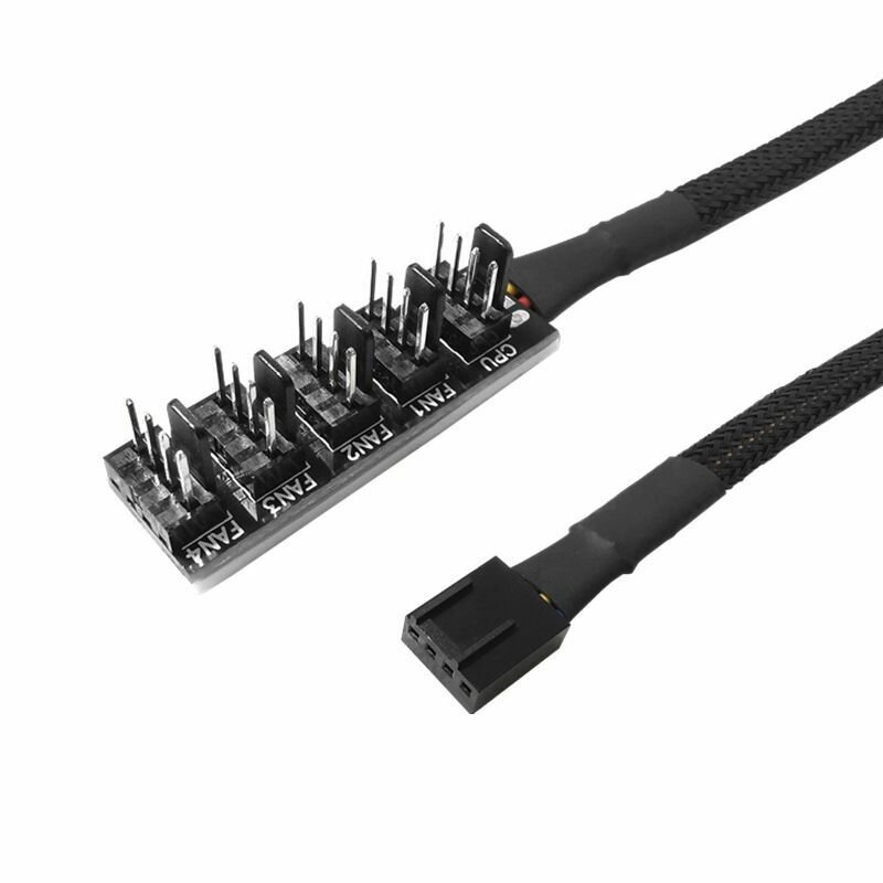 Купить Кабель удлинитель разветвитель Hub PWM для вентилятора ПК 1х 4pin - 5х 4pin, 40 см (Черный)