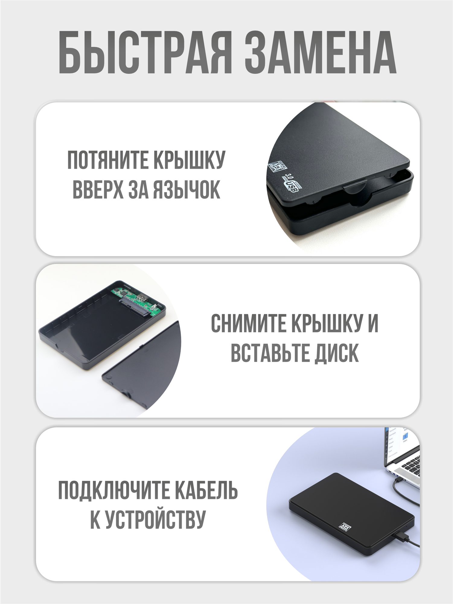 | Интерфейсы подключения | SATA 3 / USB 3.0 Type A |