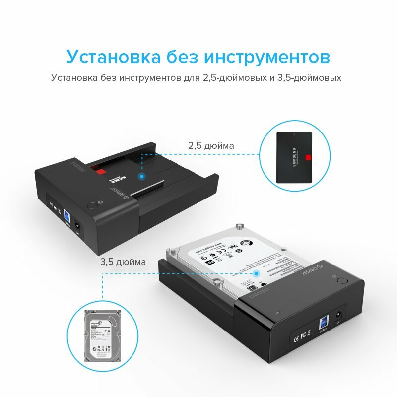Док-станция для HDD/SSD ORICO 6518US3-V2 2.5" 3.5" интересное: