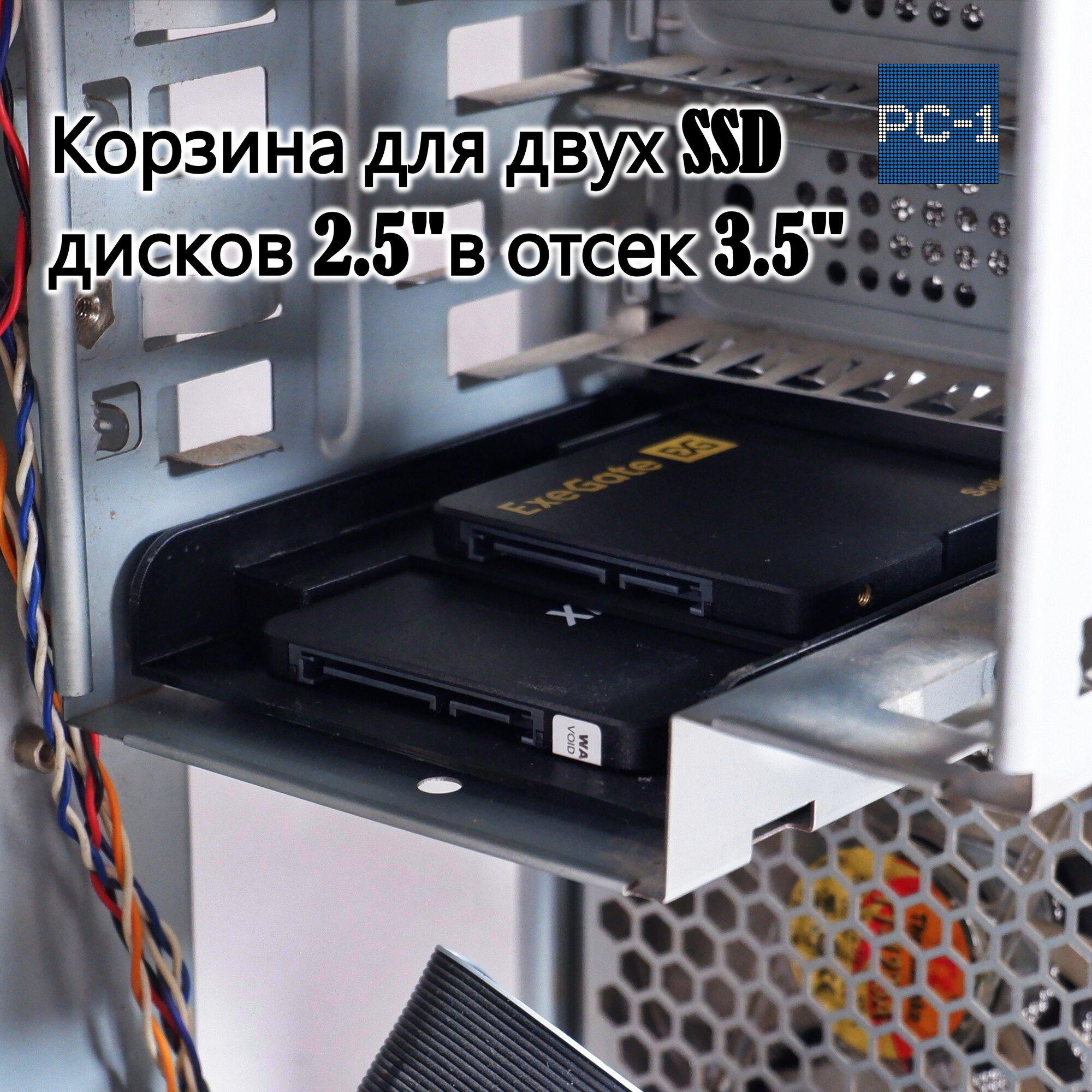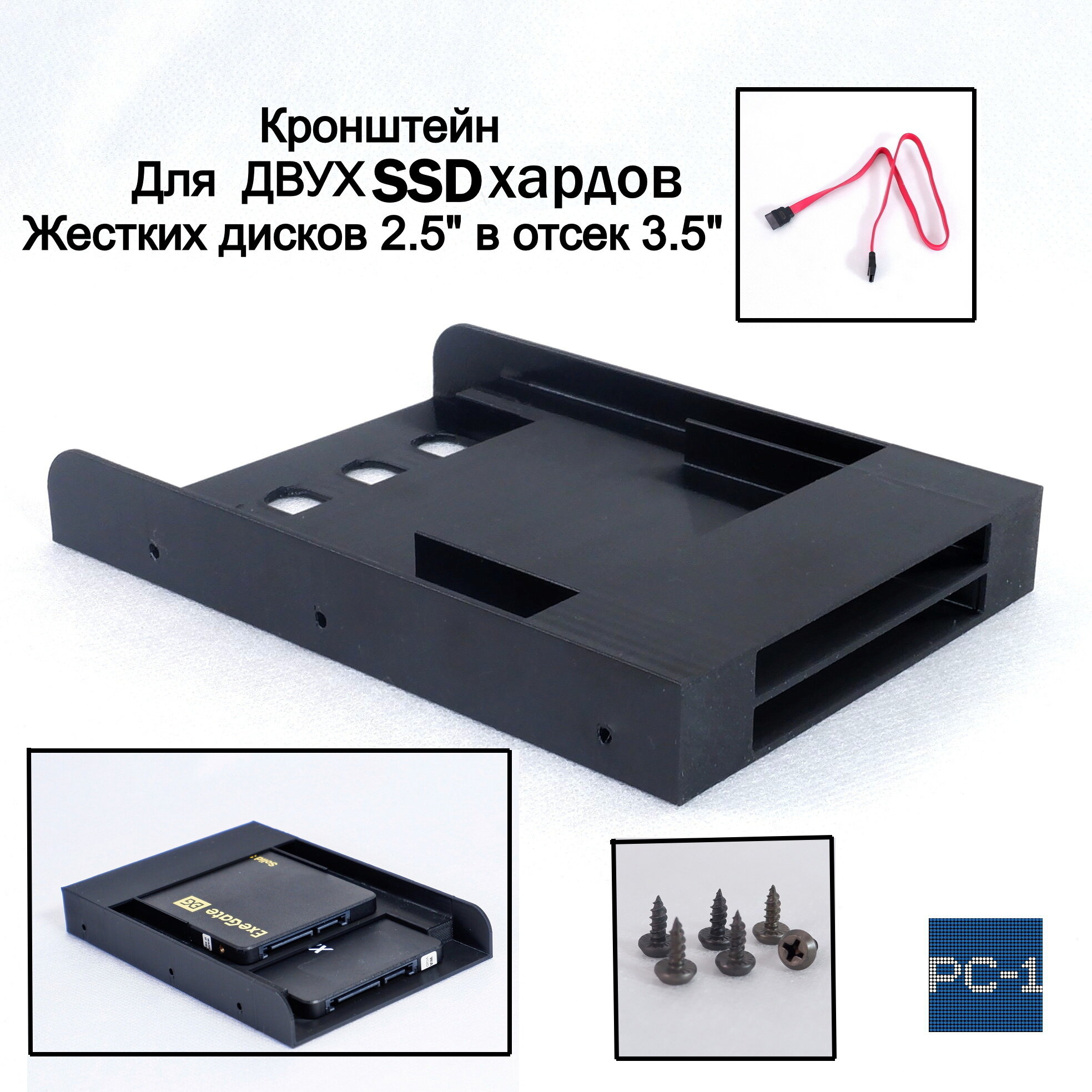 Купить Кронштейн для двух SSD жестких дисков 2.5" в отсек 3.5" корзина для твердотельных дисков съёмная в корпус ПК. Кабели SATA и винты в