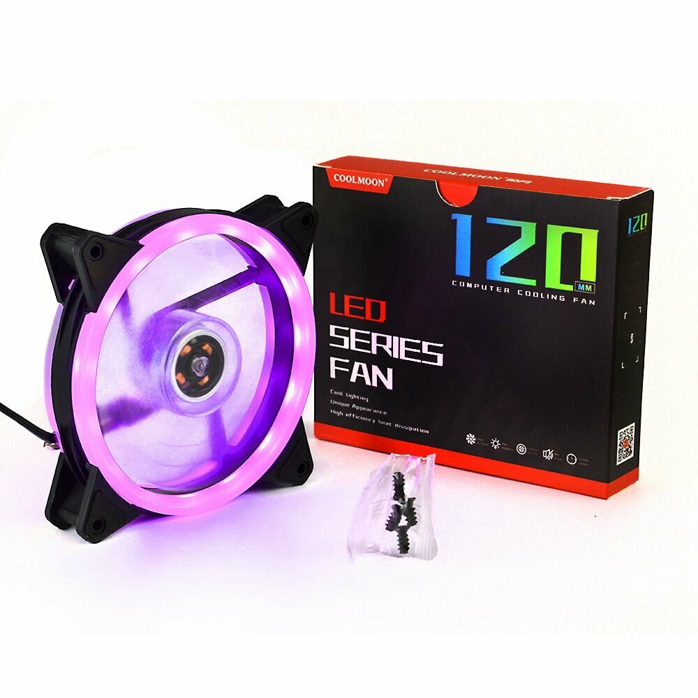 Купить Вентилятор для ПК Coolmoon c розовой подсветкой / Кулер для компьютера с подсветкой / Корпусный вентилятор