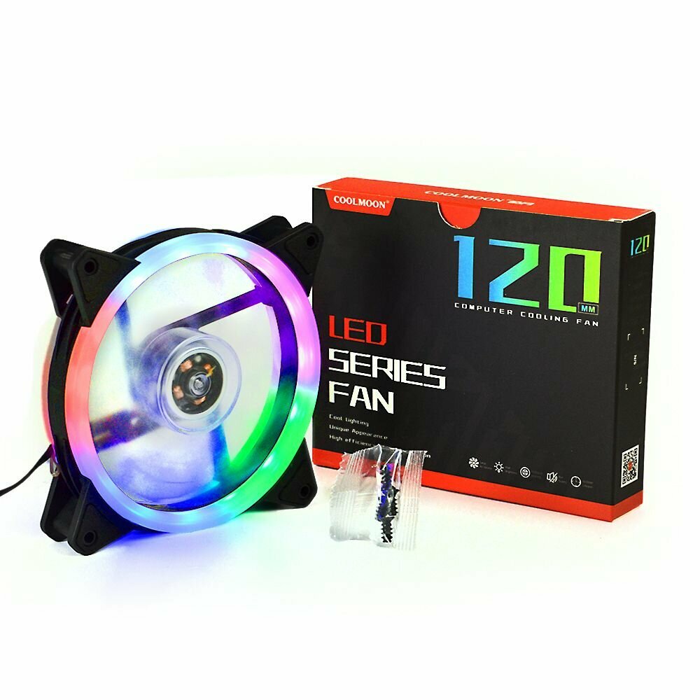 Вентилятор для ПК Coolmoon c разноцветной подсветкой / Кулер для компьютера с подсветкой / Корпусный вентилятор
