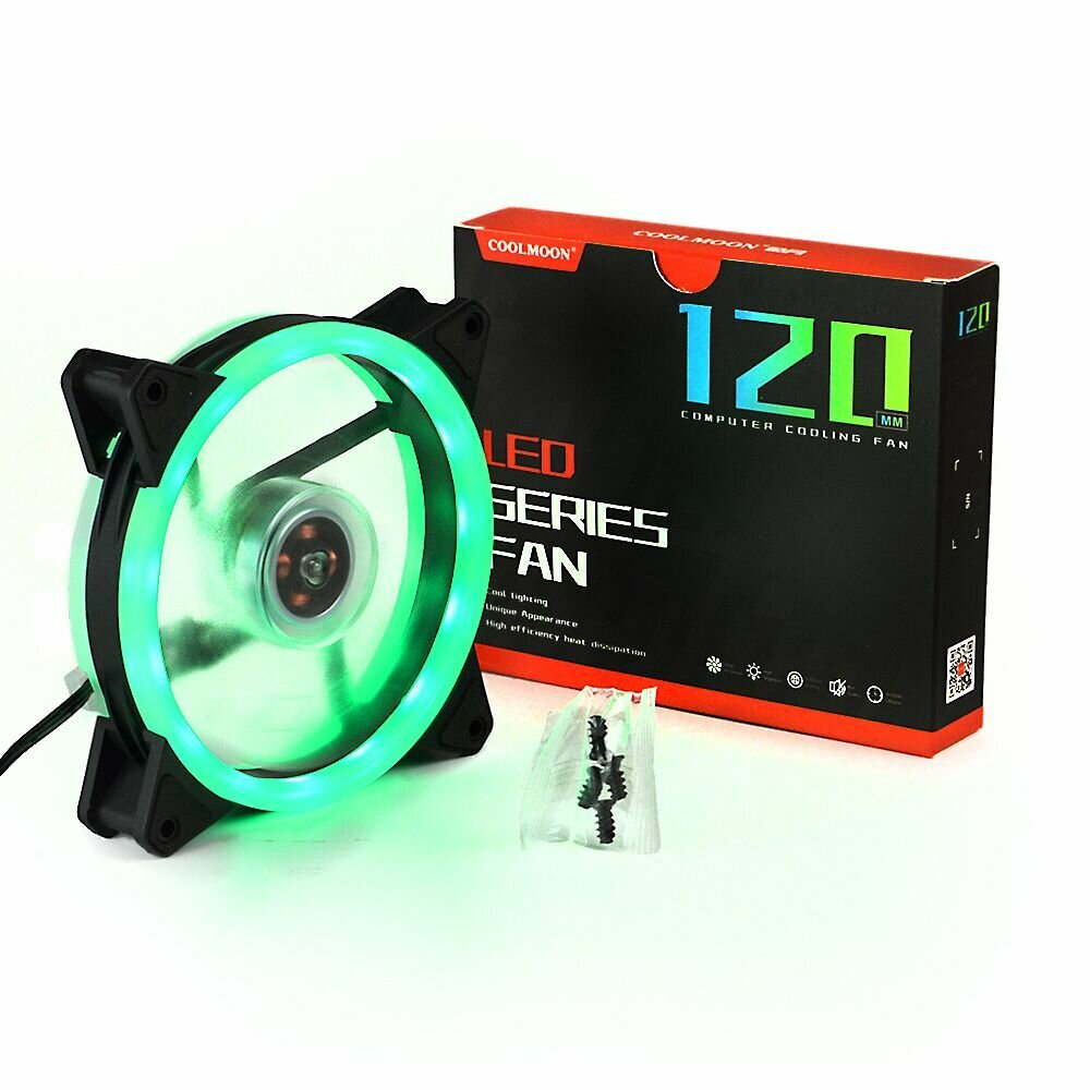 Купить Вентилятор для ПК Coolmoon c зеленой подсветкой / Кулер для компьютера с подсветкой / Корпусный вентилятор