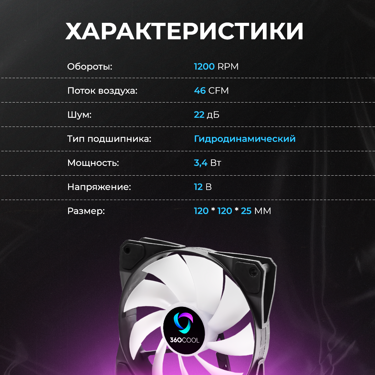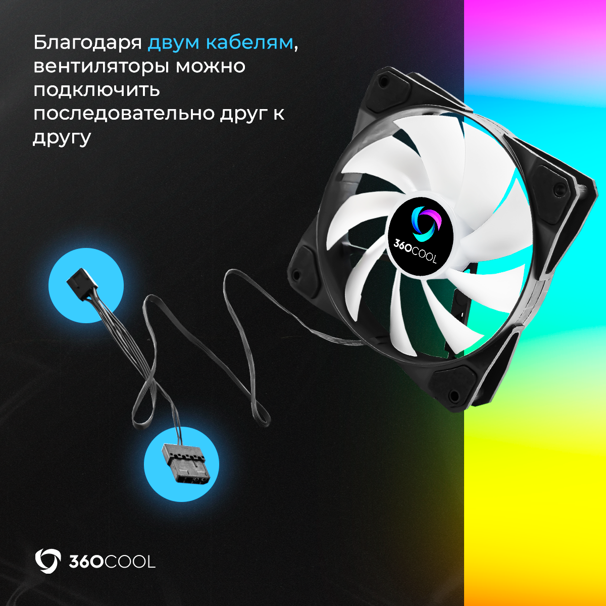 Вентилятор для охлаждения корпуса ПК с подсветкой FRGB 120мм от 360COOL, подключение к компьютеру Molex и 3-pin, черный интересное: