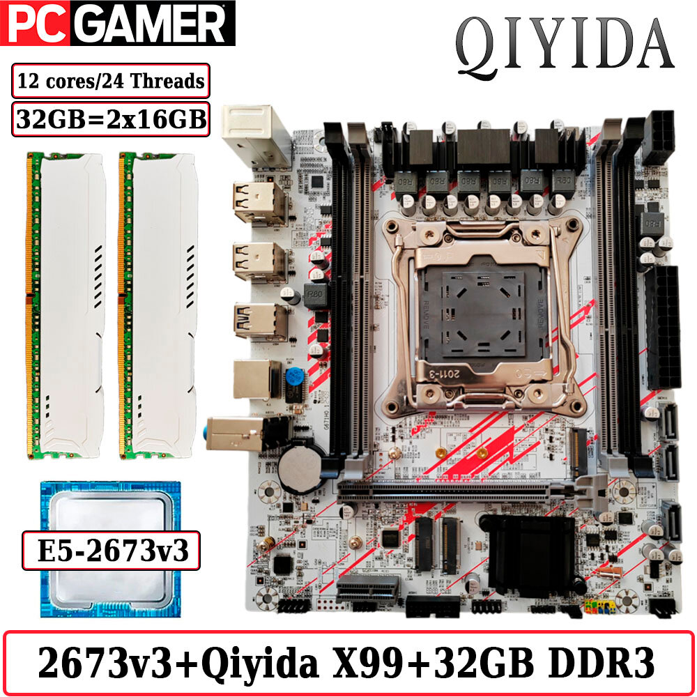 Купить Комплект материнская плата Qiyida X99 + Xeon 2673V3 + 32GB DDR3 ECC White