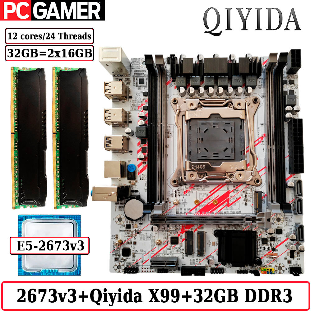 Комплект материнская плата Qiyida X99 + Xeon 2673V3 + 32GB DDR3 ECC 2x16GB