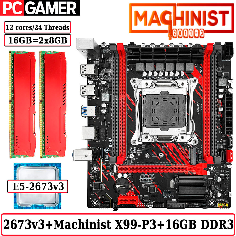 Купить Комплект материнская плата Machinist X99-P3 + Xeon 2673V3 + 16GB DDR3 ECC 2x8GB Red