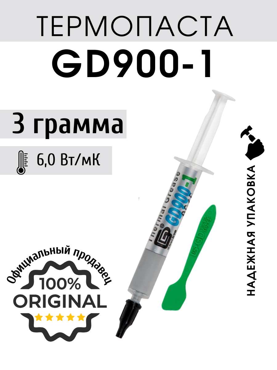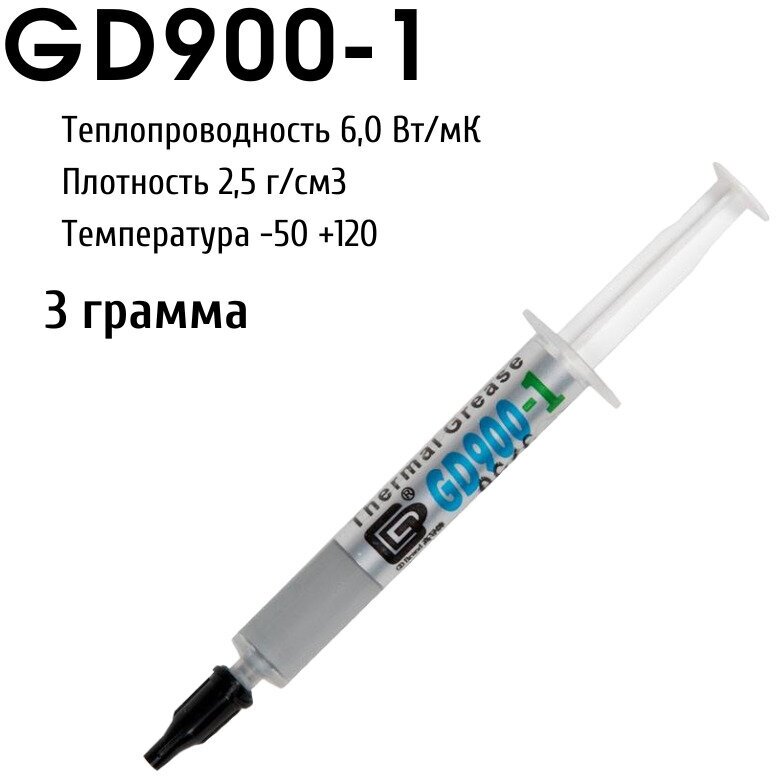 Термопаста GD900-1 в шприце 1 грамм для процессора ноутбука компьютера, теплопроводность 6,0 Вт/мК