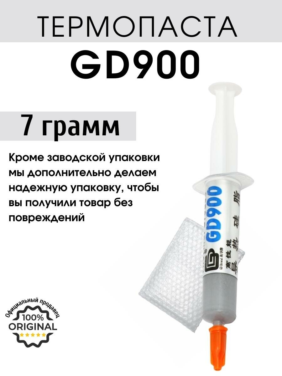 Термопаста GD900 в шприце 1 грамм, теплопроводность 4.8 Вт/мК для процессора, для компьютера, для пк.