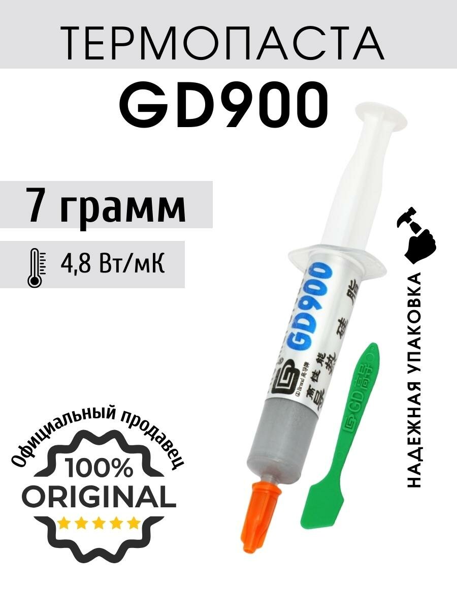 Купить Термопаста GD900 в шприце с лопаткой 7 грамм для процессора ноутбука компьютера, теплопроводность 4,8 Вт/мК