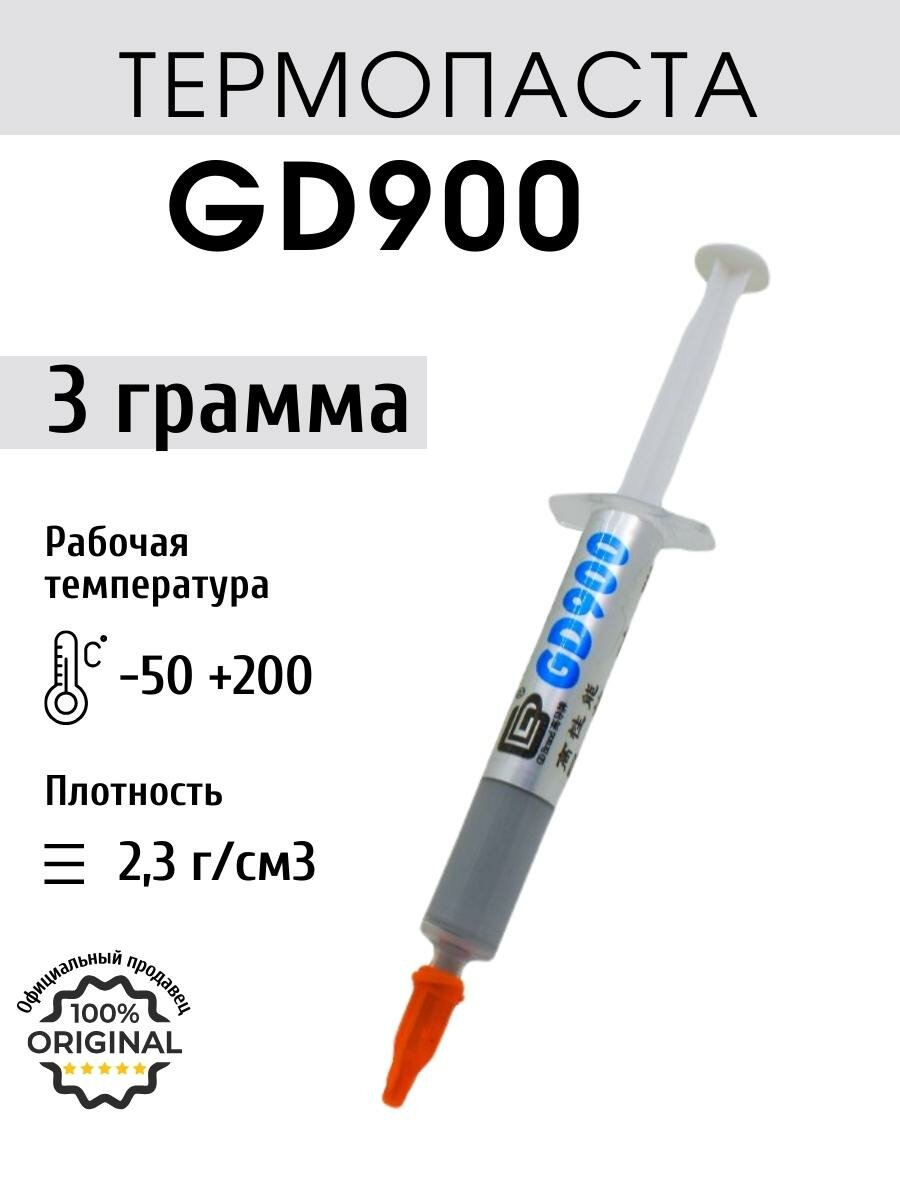 Термопаста GD900 в шприце 3 грамма для процессора ноутбука компьютера, теплопроводность 4.8 Вт/мК