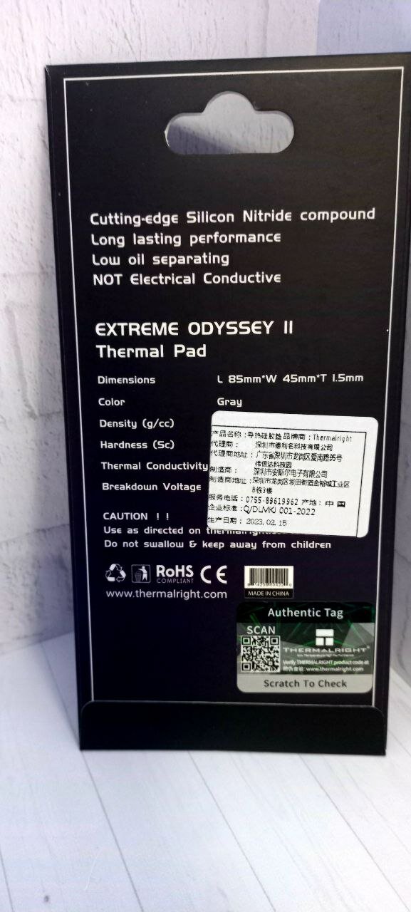 Термопрокладка Thermalright Extreme 2 Odyssey Thermal Pad 85x45 14.8 W/mk (толщина 1.5 mm) интересное: