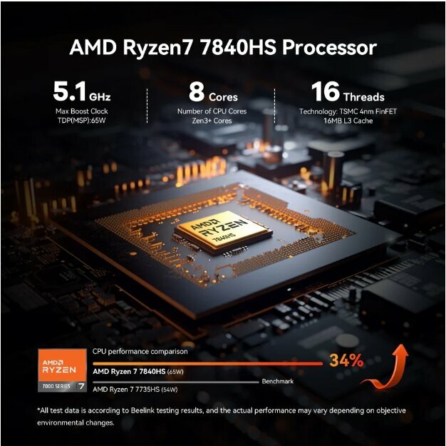 Мини ПК Beelink SER7 AMD Ryzen 7 7840HS 65W TDP 8 Cores/16 Threads, 5.1GHz, BAREBONE (Без ОЗУ и SSD)
